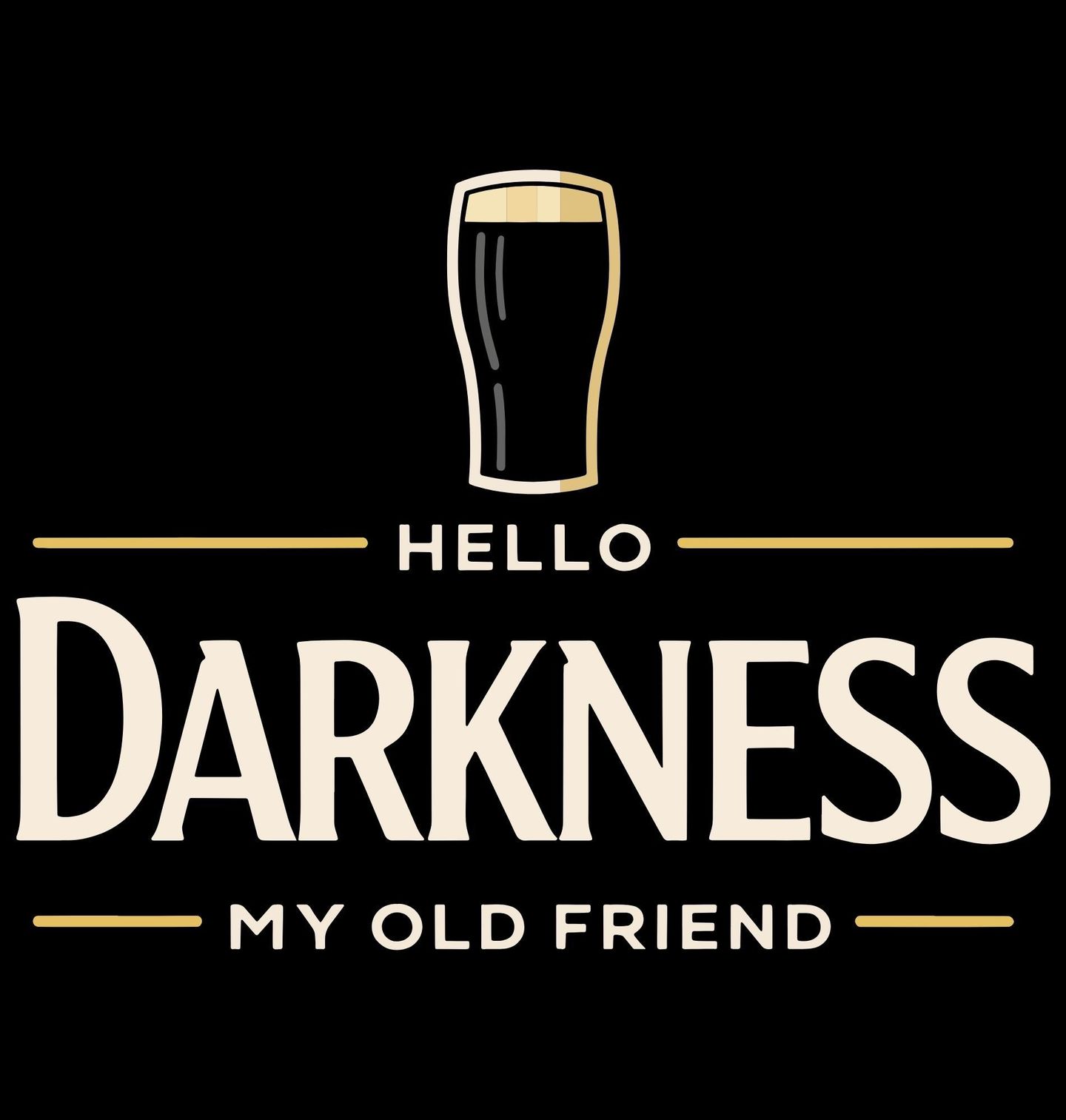 Dámské tričko Pivo Hello Darkness My Old Friend. Motiv „Hello Darkness My Old Friend“ (Ahoj temnoto, můj starý příteli) s motivem piva vytváří temnou, ale stylovou atmosféru. Design nápisu připomíná známou firmu vyrábějící pivo. Fráze Hello Darkness, My Old Friend, která pochází z písně "The Sound of Silence" od dua Simon & Garfunkel. Ideální pro fanoušky melancholie i humoru.
