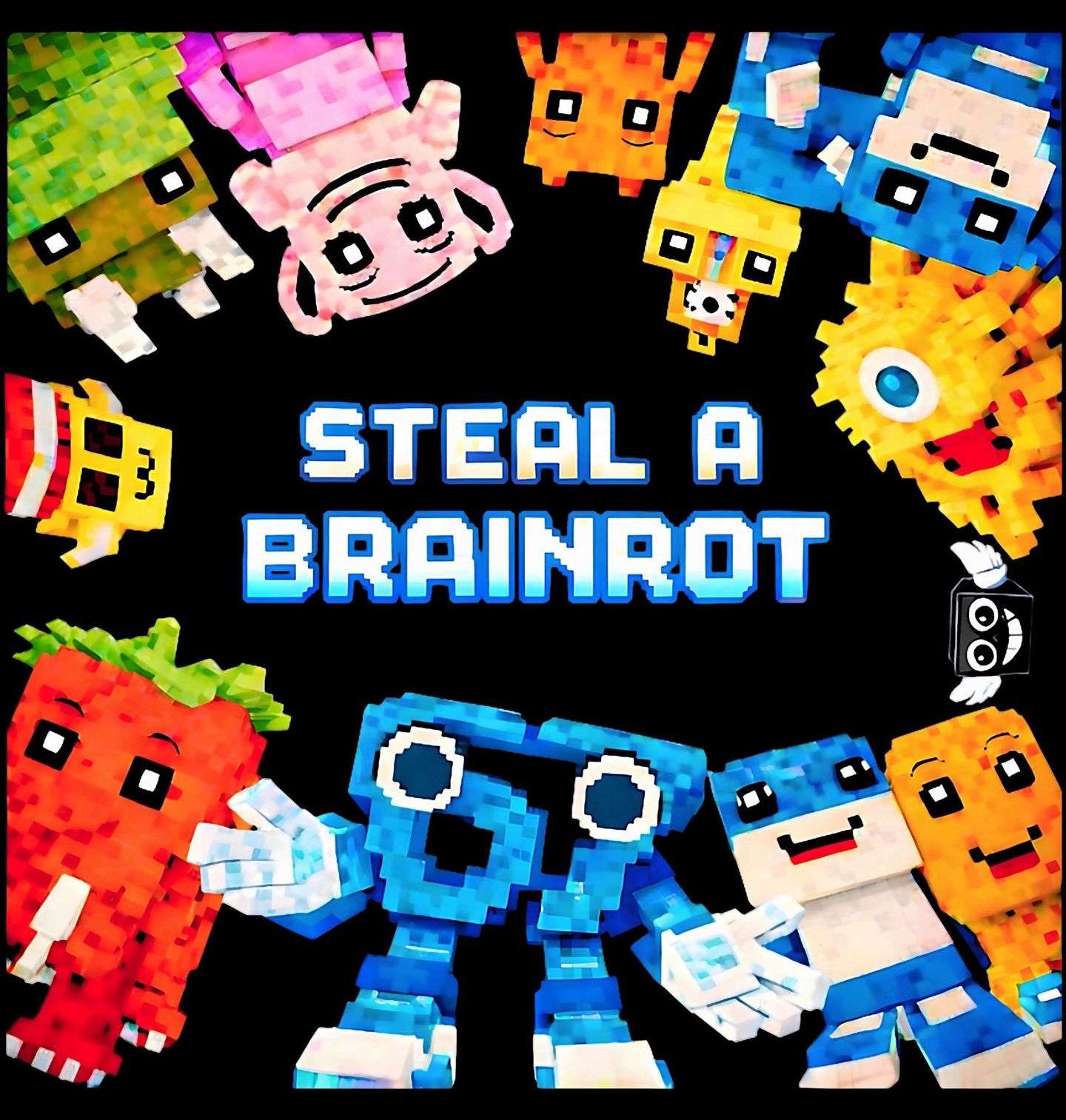 Pánské tričko Pixelový Svět. Barevný herní design s nápisem „Steal a Brainrot“ (Ukradni brainrot / šílenství) představuje skupinu pixelových postaviček v hravém stylu. Tento design evokuje svět videoher, kreativitu a lehce absurdní humor, který osloví fanoušky digitální kultury a moderní zábavy.