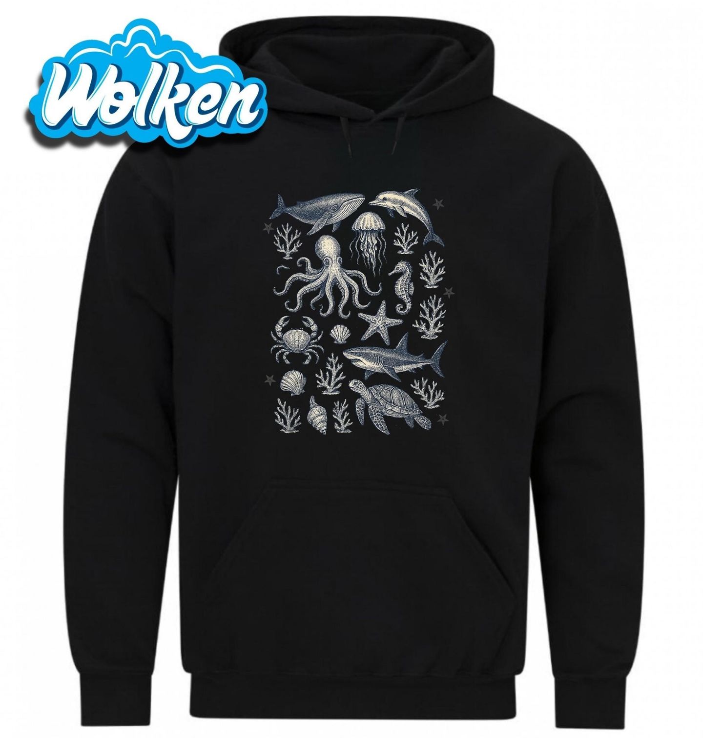 Pánská mikina Podmořský Svět. Stylové tričko s originálním vintage motivem, které vás přenese do hlubin moře a oceánu. Na designu je delfín, želva, velryba, chobotnice, žralok, krab, medúza, mořský koník, hvězdice, korály a různé mořské mušle. Každý detail je precizně zpracován, takže motiv působí jako ruční ilustrace starých atlasů mořské fauny. Ideální pro milovníky moře, oceánu a potápění.