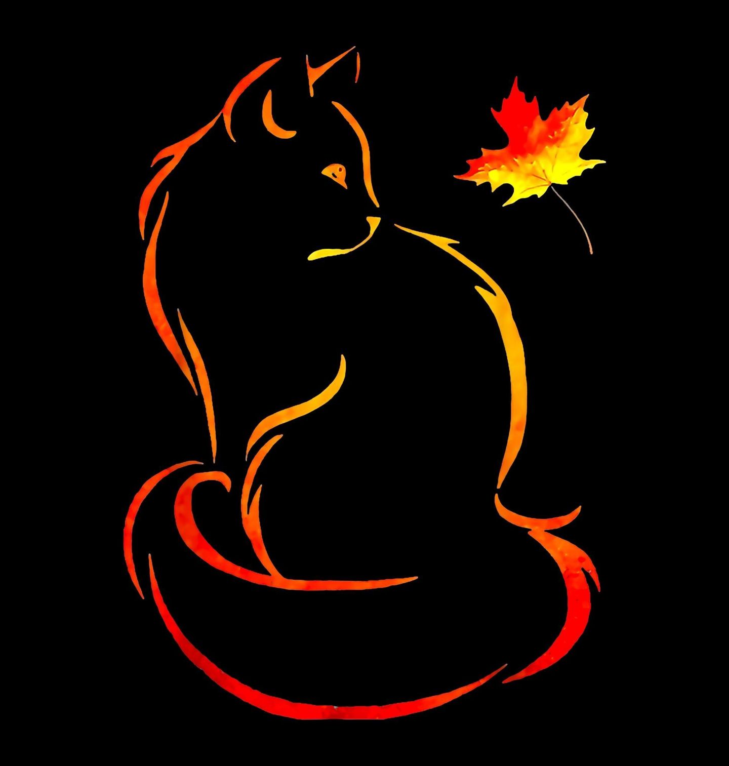 Dámské tričko Podzimní Silueta Kočky. Minimalistická ilustrace zobrazuje kočku v teplých podzimních odstínech červené a oranžové spolu s padajícím listem. Jednoduché linie a barevný přechod vytvářejí moderní a elegantní vzhled. Ideální dekorace pro milovníky podzimu a koček.