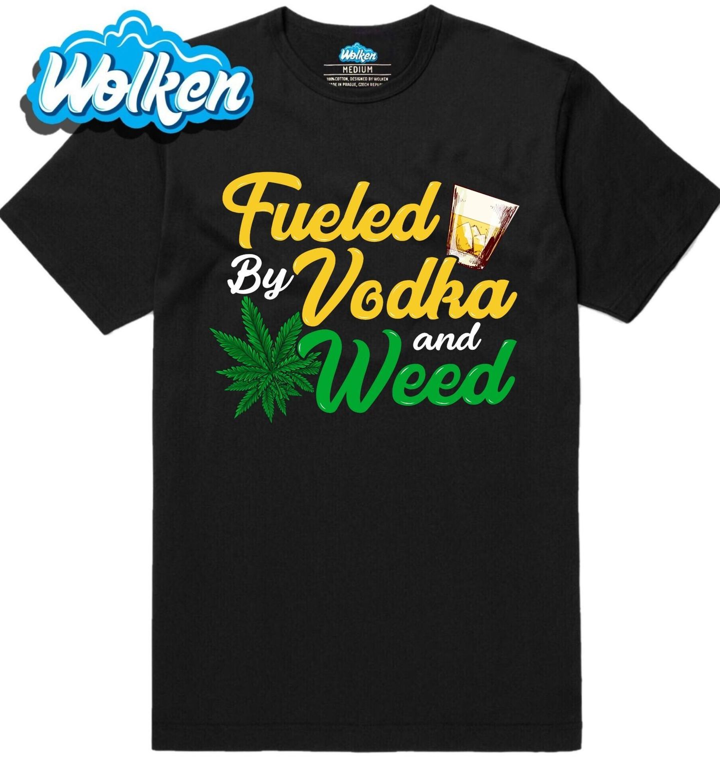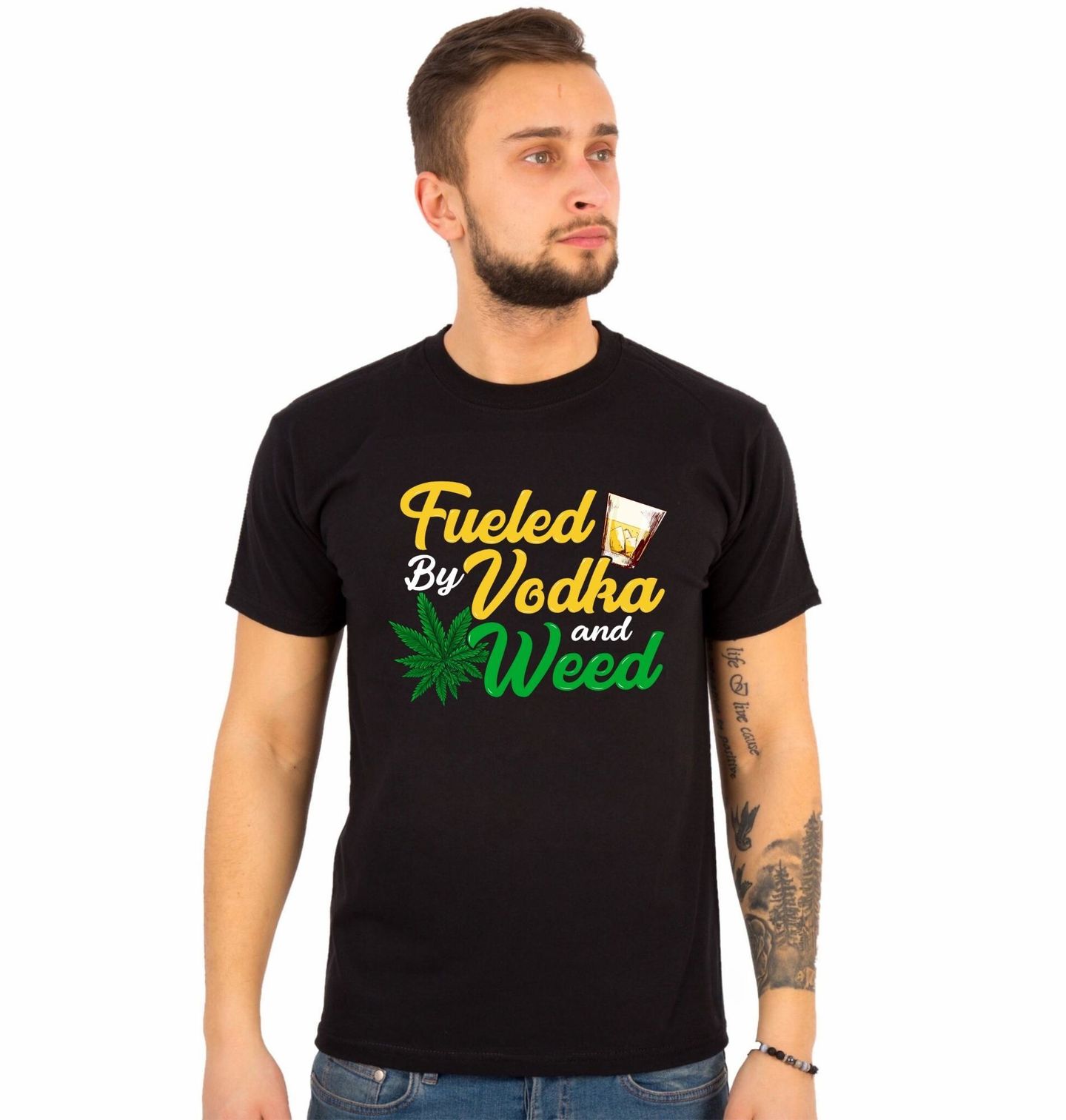 Pánské tričko Poháněno Vodkou a Trávou. Vodka, alkohol, marihuana a tráva – kombinace, která vystihuje volnomyšlenkáře s humorem. Motiv „Poháněno vodkou a trávou“ (Fueled by Vodka and Weed) skvěle padne na párty nebo pro každého, který má rád trochu alternativního stylu života.