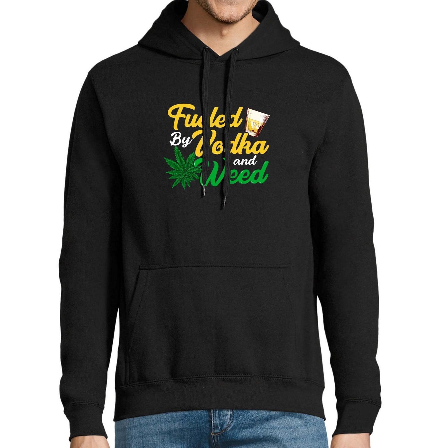 Pánská mikina Poháněno Vodkou a Trávou. Vodka, alkohol, marihuana a tráva – kombinace, která vystihuje volnomyšlenkáře s humorem. Motiv „Poháněno vodkou a trávou“ (Fueled by Vodka and Weed) skvěle padne na párty nebo pro každého, který má rád trochu alternativního stylu života.