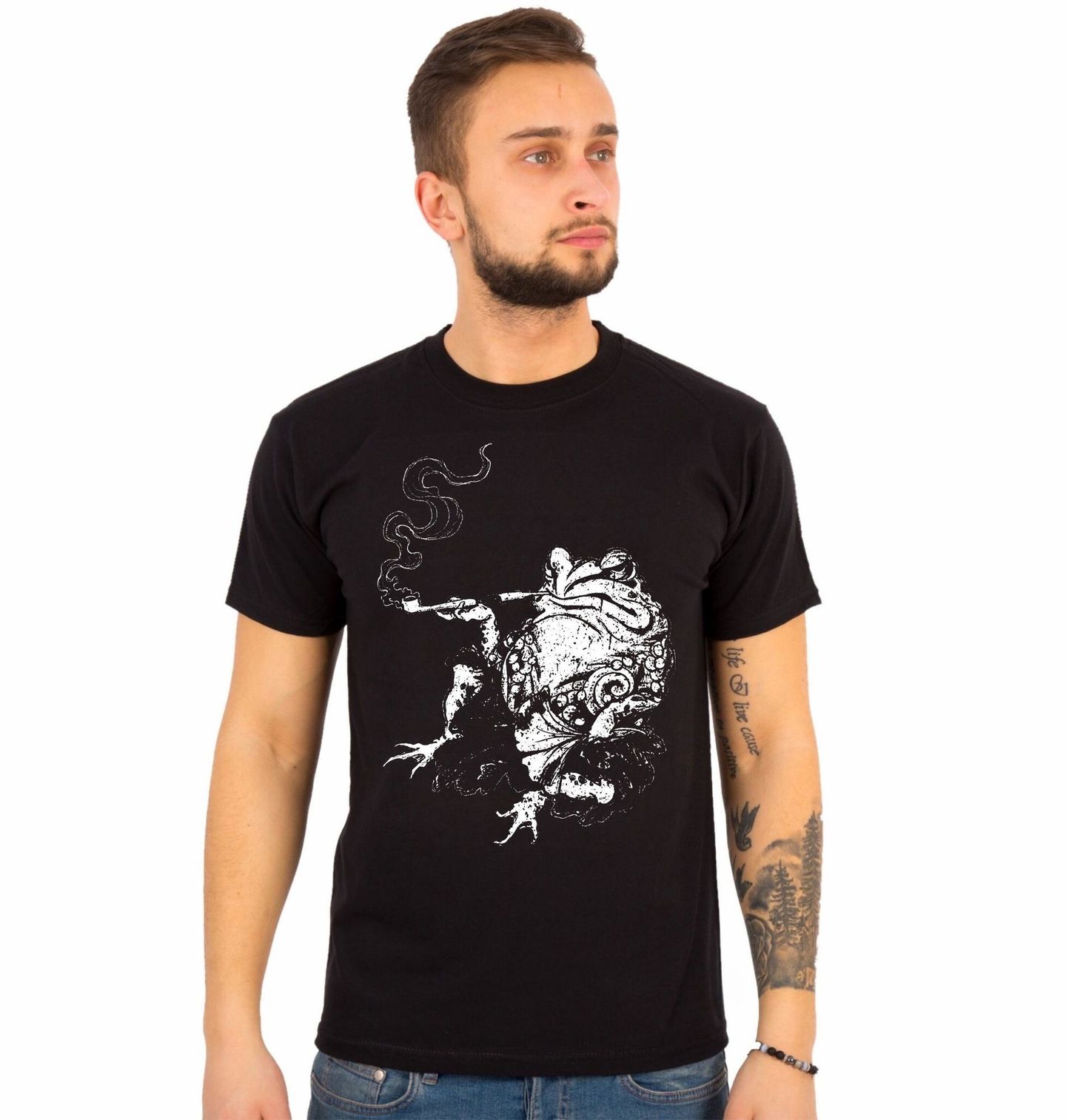 Pánské tričko Pohodová Žába s Dýmkou. Originální motiv zobrazuje charismatickou žábu, která si v klidu vychutnává svou dýmku a působí naprosto uvolněně. Ilustrace v sobě spojuje humor, nadhled a jedinečný styl, díky čemuž se stává výrazným prvkem na každém kousku oblečení. Detailní provedení dodává motivu osobitý charakter a lehce vintage atmosféru.