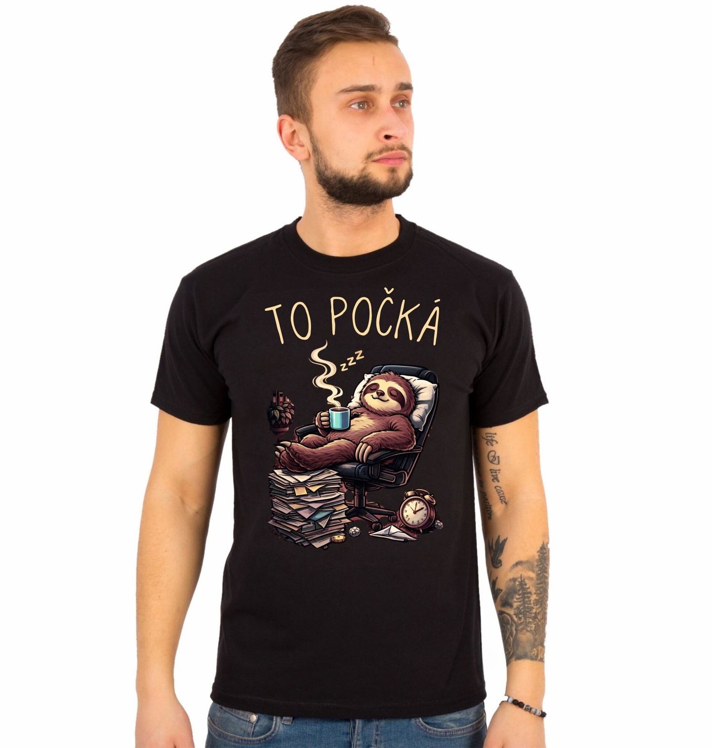 Pánské tričko Pohodový Lenochod To počká. Lenochod pohodlně rozvalený v křesle s hrnkem kávy připomíná, že ne všechno musí být hotové hned. Tento design je oslavou pohody, klidu a životní filozofie „to počká“. Ideální volba pro každého, kdo ví, že lenost není slabost, ale umění zpomalit a užít si okamžik.