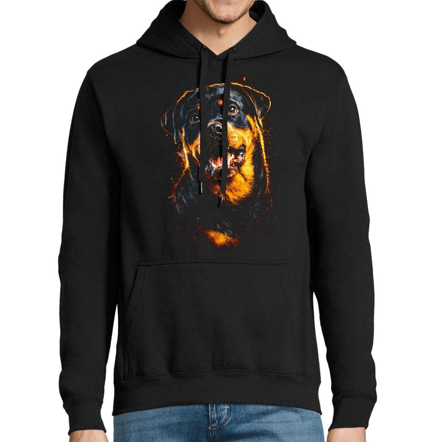 Pánská mikina Poslušný Rotvajler. Tento výrazný motiv zachycuje plemeno Rottweiler, které je symbolem síly, odvahy a oddanosti. Detailní portrét zdůrazňuje charakteristický vzhled tohoto plemene – mohutnou hlavu, výrazné oči a typické černo-pálené zbarvení. Každý pejskař, který miluje toto plemeno, ocení jeho energii a respekt budící výraz.