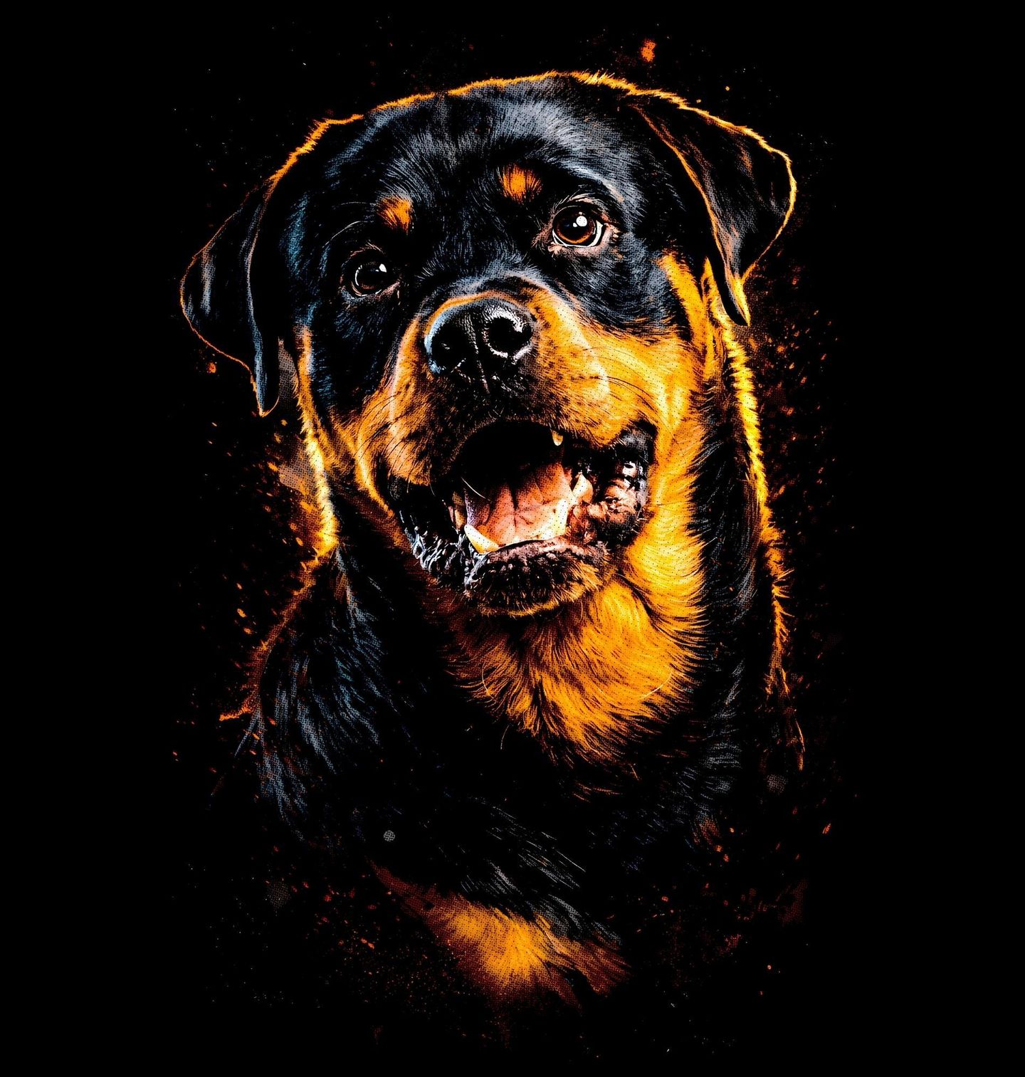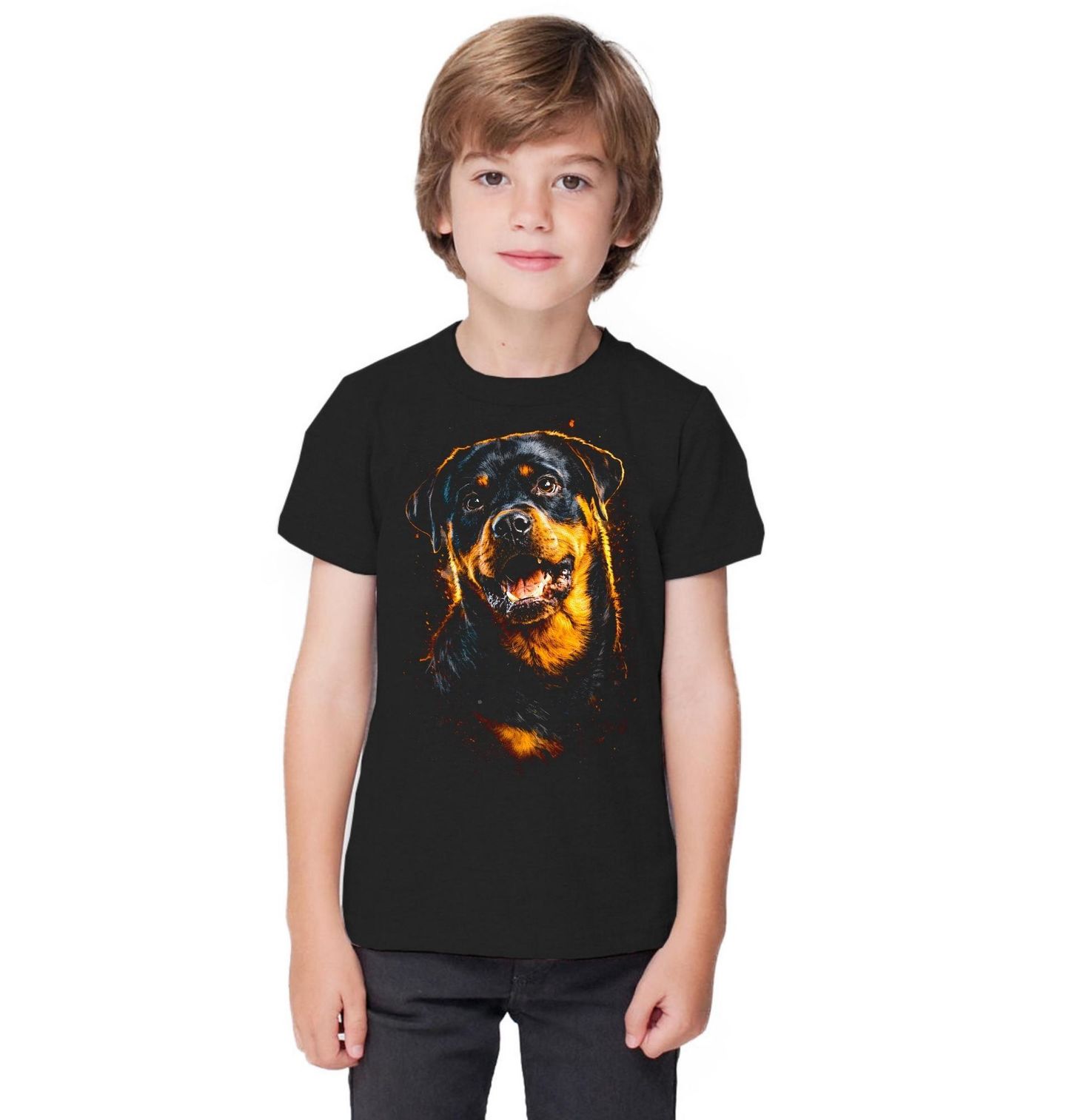 Dětské tričko Poslušný Rotvajler. Tento výrazný motiv zachycuje plemeno Rottweiler, které je symbolem síly, odvahy a oddanosti. Detailní portrét zdůrazňuje charakteristický vzhled tohoto plemene – mohutnou hlavu, výrazné oči a typické černo-pálené zbarvení. Každý pejskař, který miluje toto plemeno, ocení jeho energii a respekt budící výraz.