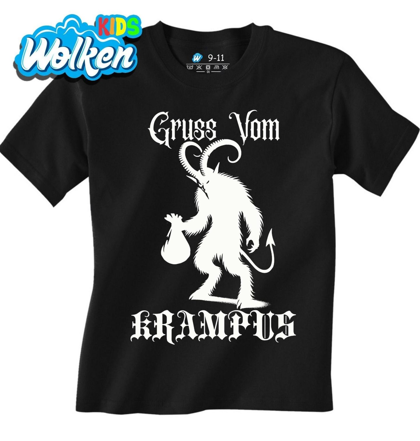 Dětské tričko Pozdrav od Krampuse pro Zlobivé Děti. Pozdrav od Krampuse německy „Gruss Vom Krampus“ přináší originální nádech pro všechny, kteří mají rádi Vánoce s netradiční atmosférou. Krampus, tradiční bytost alpského folklóru, symbolizuje temnější stránku svátků a dodává jim pořádnou dávku mystiky.