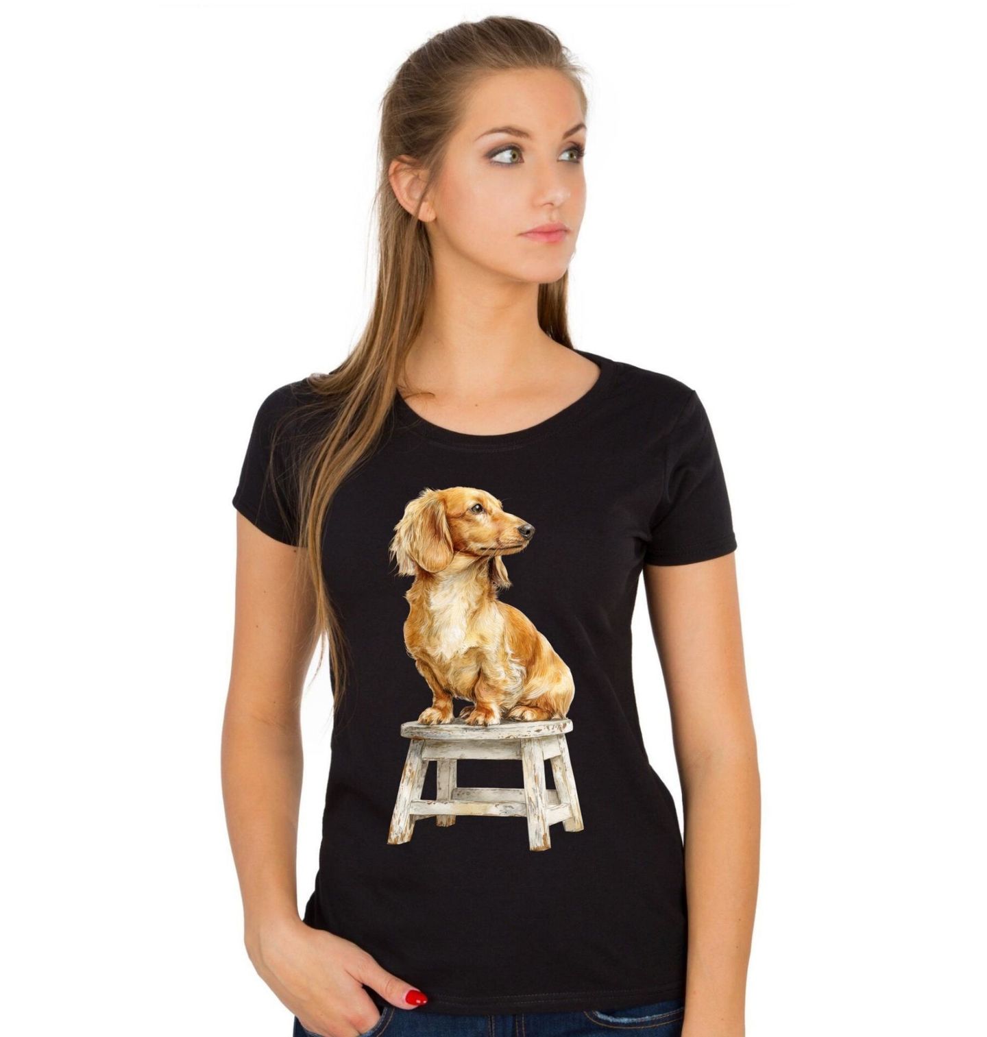 Dámské tričko Pózující Jezevčík na Stoličce