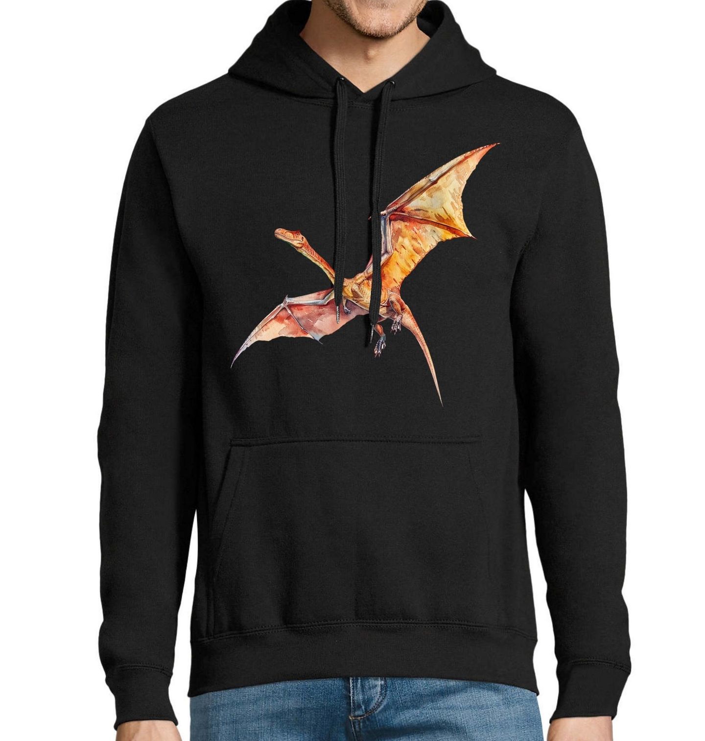 Pánská mikina Pravěký Ptakoještěr Pterosaur. Zvíře na motivu je ptakoještěr (často lidově pterodaktyl) – pravěký létající plaz. Tento prehistorický tvor patřil mezi plazy a vyznačoval se blanitými křídly, lehkou stavbou těla a schopností aktivního letu. Byli to první obratlovci v historii Země, kteří byli schopni aktivního letu. Ptakoještěři žili v období mezozoika – tedy ve stejné éře jako dinosauři.