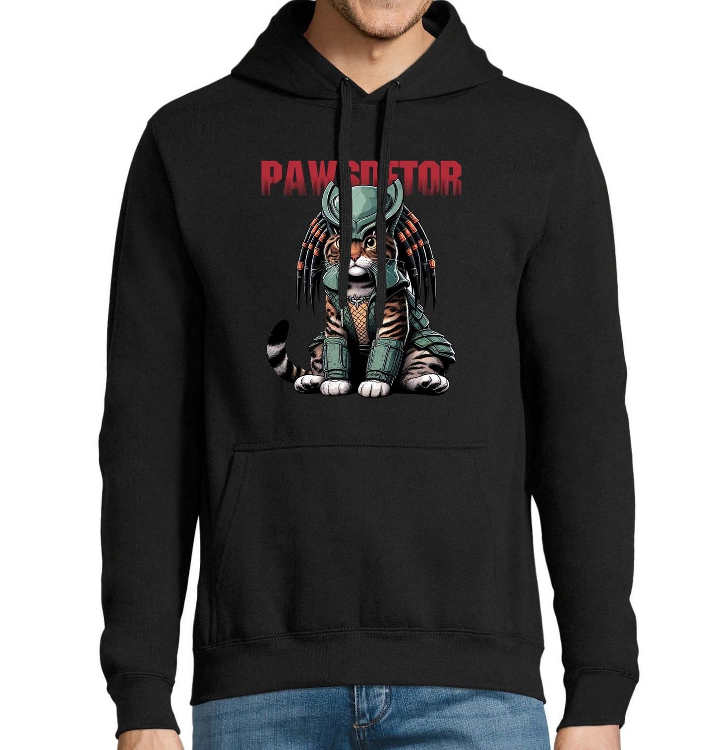 Pánská mikina Predátor Bengálská Kočka Pawsdetor. Stylový motiv Pawsdetor přináší jedinečné spojení drsného sci-fi Predátora a majestátní bengálské kočky, která si ale rozhodně nenechá nic líbit! Tento design je parodií na kultovní film Predátor a je ideální pro milovníky koček i fanoušky akčních klasik.