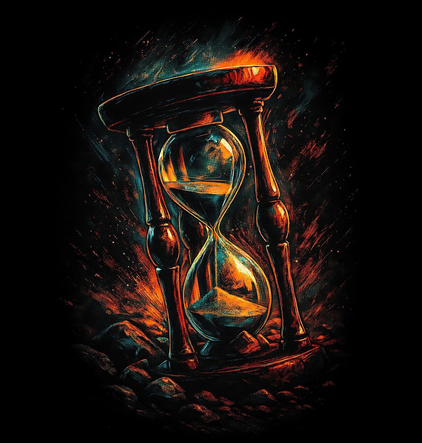 Pánské tričko Přesýpací Hodiny. Silný a nadčasový motiv, který zachycuje neúprosný tok, jakým plyne čas. Přesýpací hodiny zde symbolizují pomíjivost, rozhodnutí i hodnotu každého okamžiku. Dynamické barvy a dramatické zpracování dávají motivu energii, která zaujme na první pohled. Ideální volba pro všechny, kdo si váží času, hledají motivaci nebo chtějí nosit design s filozofickým přesahem.