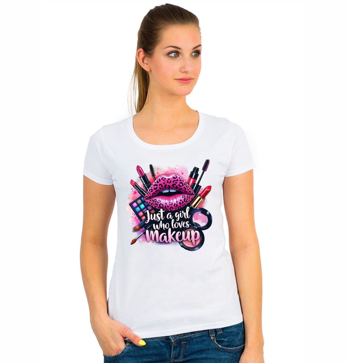 Dámské tričko Prostě holka, která miluje make-up. „Just a girl who loves makeup“ je perfektní volbou pro všechny milovnice líčení, krásy a kosmetiky. Výrazné leopardí rty, rtěnky, štětce i paletka tvoří nepřehlédnutelný design, který nadchne každou beauty nadšenkyni. Dejte najevo svůj styl a vášeň pro make-up!