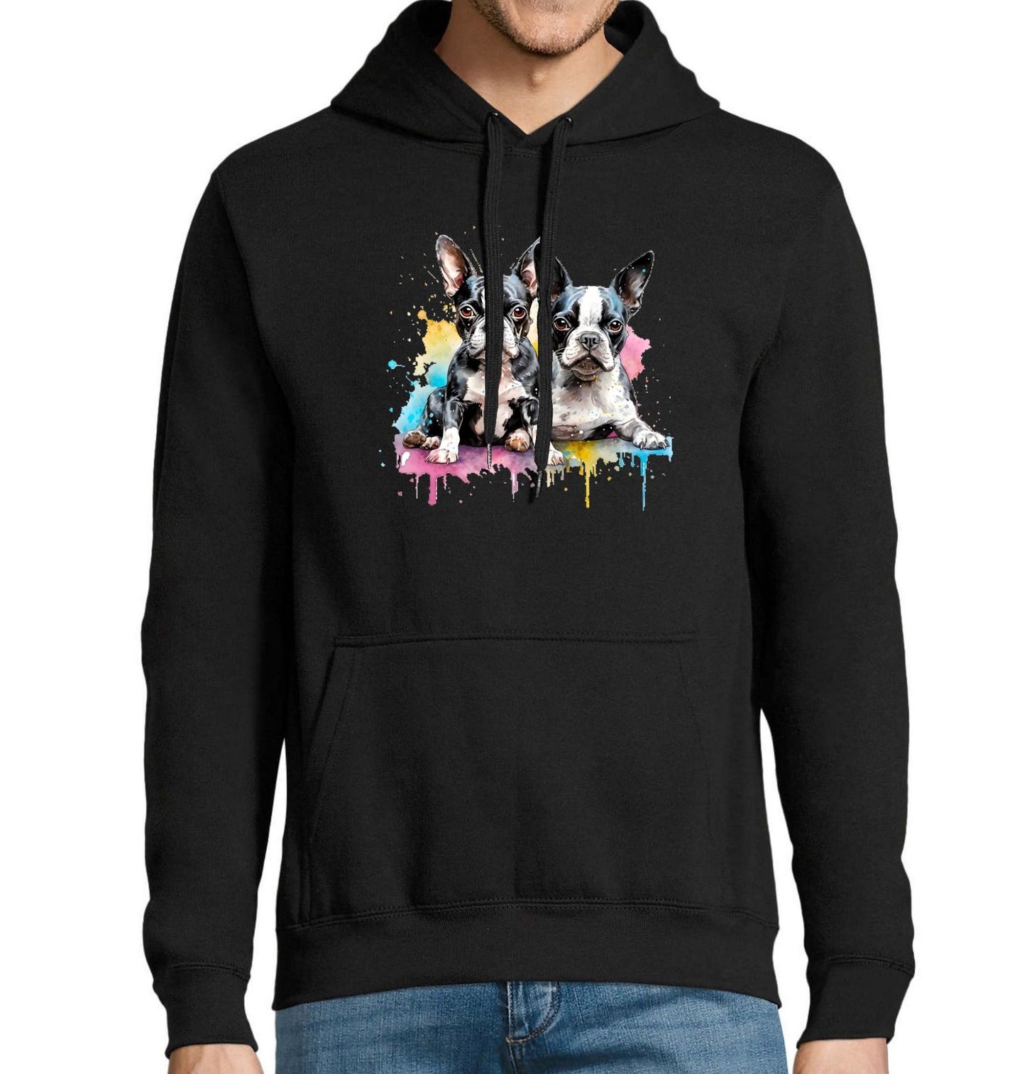 Pánská mikina Psí sourozenci Bostonský teriér. Dva nerozluční parťáci, veselý pohled a barvy, které rozjasní den – přesně to vystihuje tento motiv. Bostonský teriér je pes plný energie, šarmu a oddanosti. Ideální volba pro každého pejskaře, který chce na svém oblečení nebo doplňku ukázat, že pes je právoplatný člen rodiny.