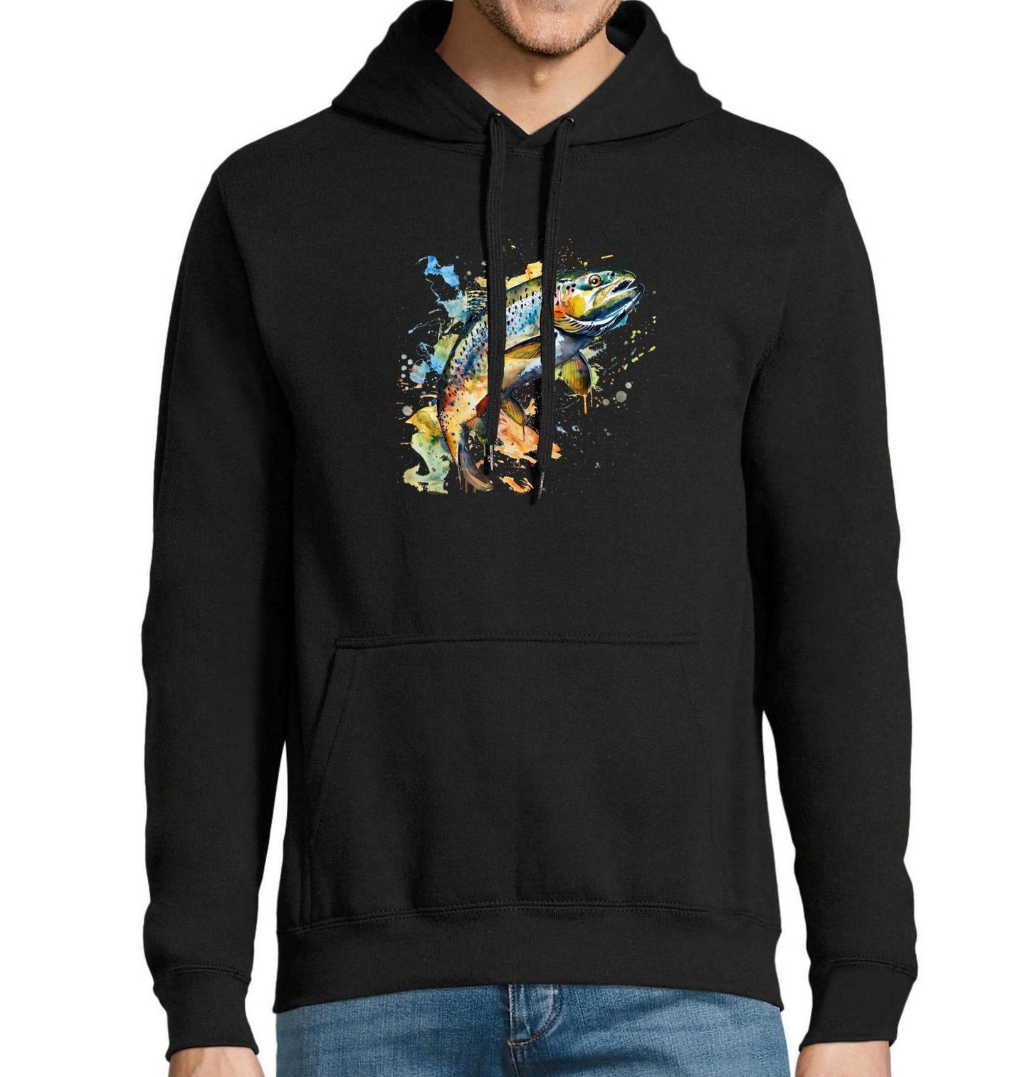 Pánská mikina Pstruh duhový Trout. Podle tvaru těla, hlavy a skvrnitosti se s velkou pravděpodobností jedná o pstruha duhového (Oncorhynchus mykiss). Ideální pro každého milovníka rybaření i fanouška přírody. Ať už jsi začínající rybář, nebo ostřílený lovec trofejních kusů, tohle ti připomene, proč miluješ každý den u vody.