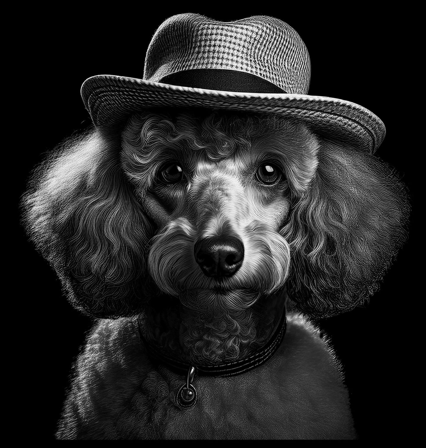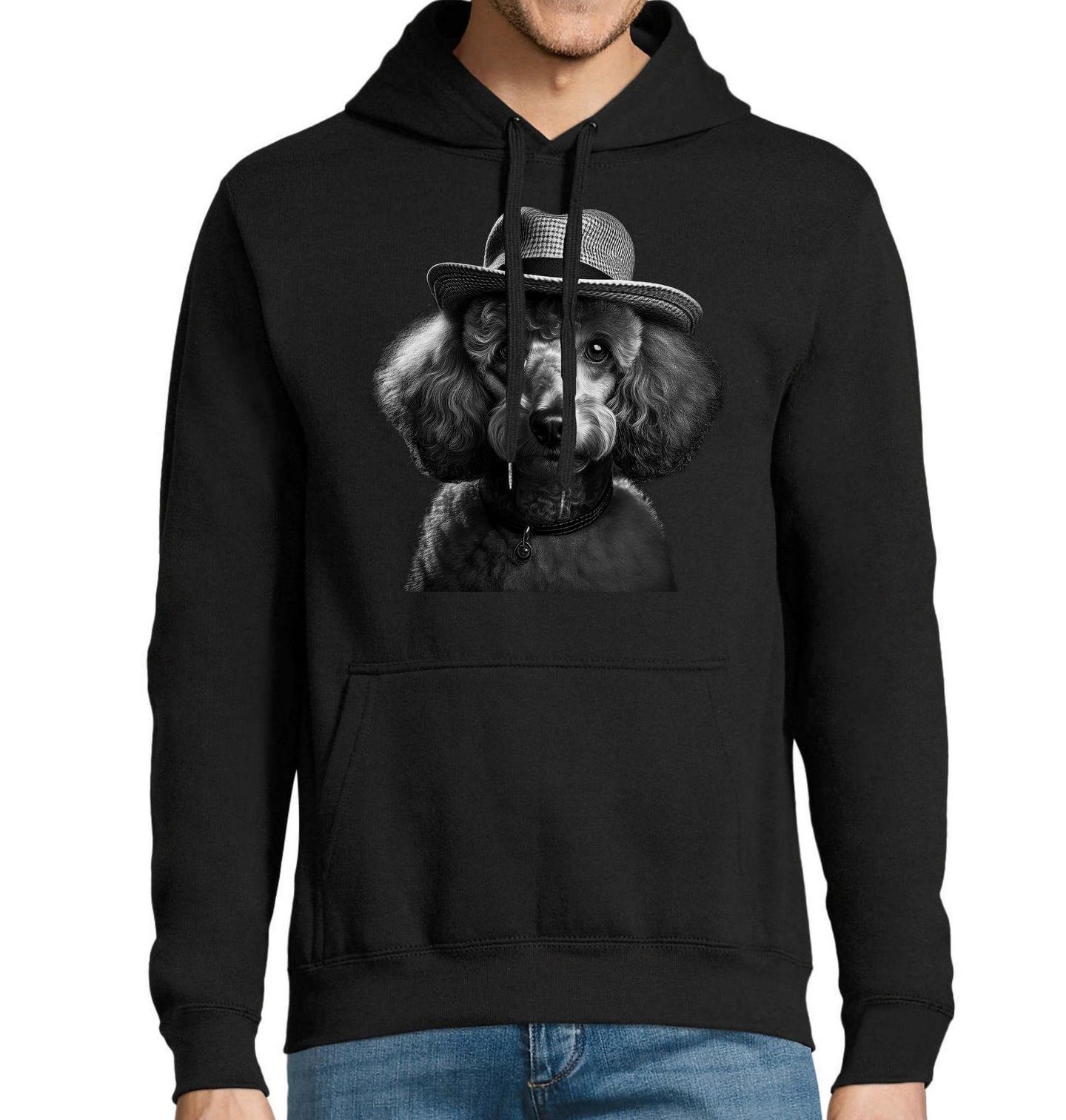 Pánská mikina Pudl s Kloboukem. Tento stylový pes potěší každého, kdo je hrdý pejskař a miluje nápadité motivy inspirované psí elegancí. Pudl je známý svou inteligencí, noblesou a přátelskou povahou, a právě proto se tento motiv skvěle hodí na oblečení i doplňky jako výrazný detail pro milovníky plemene Pudl.