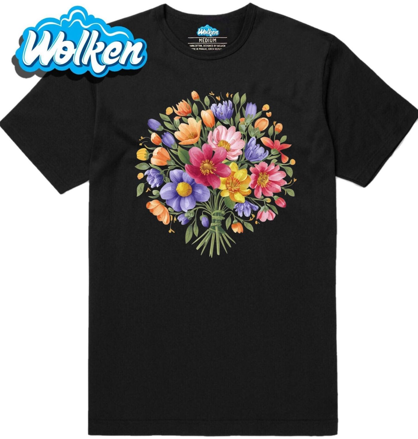 Pánské tričko Pugét Květin. Jemně akvarelovaný pugét pestrých květin rozzáří každý den a skvěle se hodí na tričko, plátěnou tašku nebo plakát. Květiny v plném rozkvětu symbolizují krásu, radost a nové začátky. Motiv je ideální jako dárek pro milovníky přírody, umění nebo romantické duše.