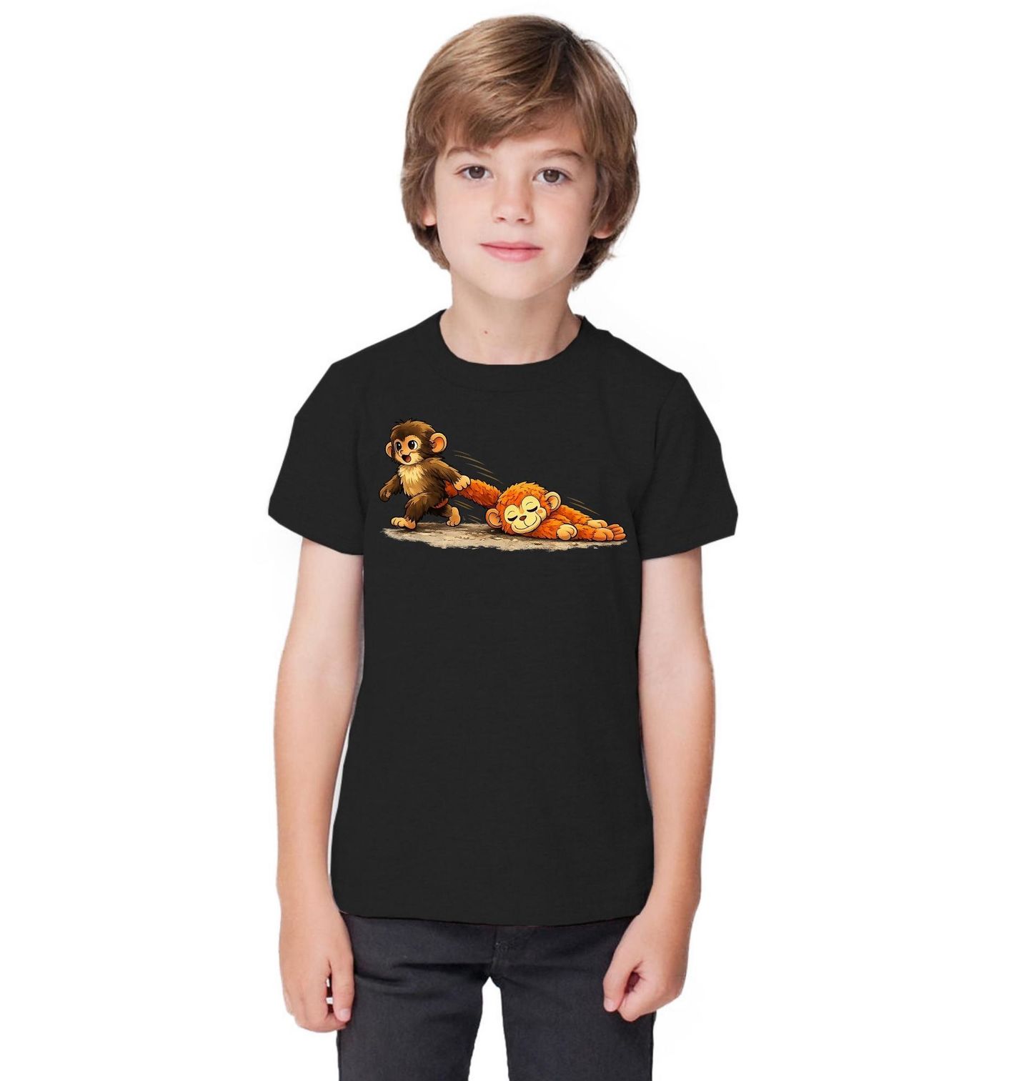 Dětské tričko Punch a jeho Nejlepší Kamarád. Dojemný design ukazuje opičku Punch, jak si nese svého plyšového společníka, který pro něj znamená víc než jen hračku. Přestože byl v životě odmítnut, našel si vlastní cestu k lásce a bezpečí. Tento design symbolizuje věrnost, odhodlání a sílu nevzdat se, i když je svět proti vám.