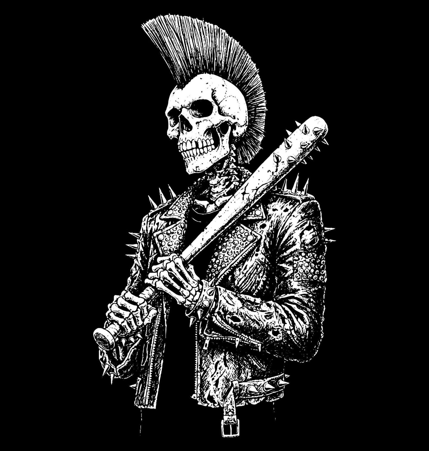 Dámské tričko Punkáč Anarchie. Nezaměnitelný motiv, kde dominuje detailní lebka v roli pravého pankáč, oblečená v kožené bundě s ostny a s ikonickým čírem. V rukou drží pálku s hroty, což dodává celému designu ještě větší dávku rebelie, síly a nekompromisního postoje. Tento motiv je perfektní pro všechny, kteří milují punk, rock a výraznou alternativní módu.