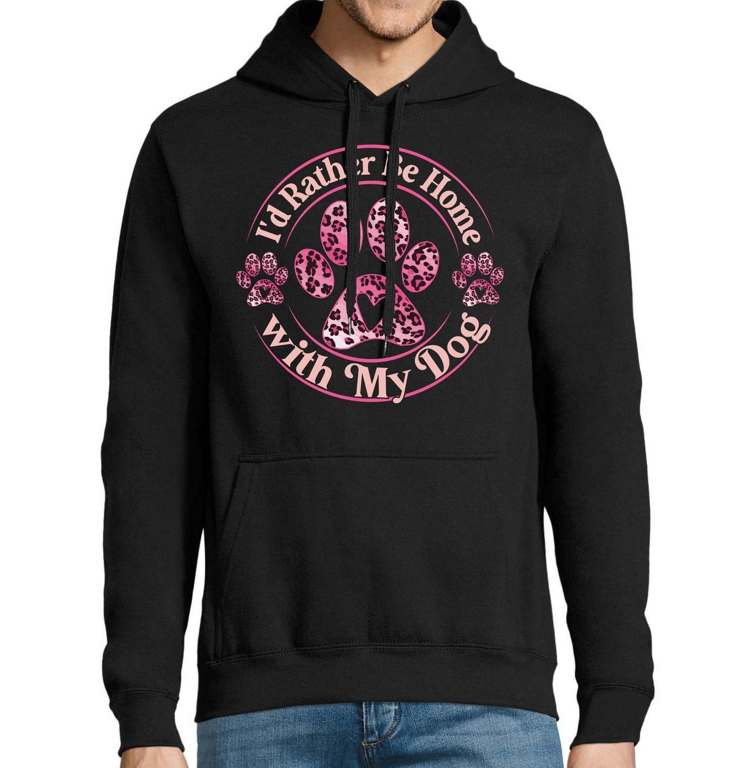 Pánská mikina Raději bych byl doma se svým psem. Stylový motiv s tlapkou a nápisem „I’d Rather Be Home With My Dog“ potěší každého, kdo miluje pes a tráví nejraději čas se svým čtyřnohým parťákem. Design v jemných růžových tónech působí hravě a zároveň elegantně, takže se hodí pro každého, kdo je hrdý pejskař a chce ukázat svou lásku ke psům.