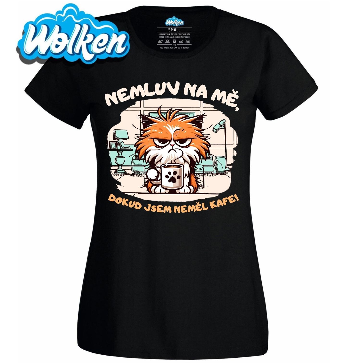 Dámské tričko Ranní Kočka Nemluv na mě, dokud jsem neměl kafe