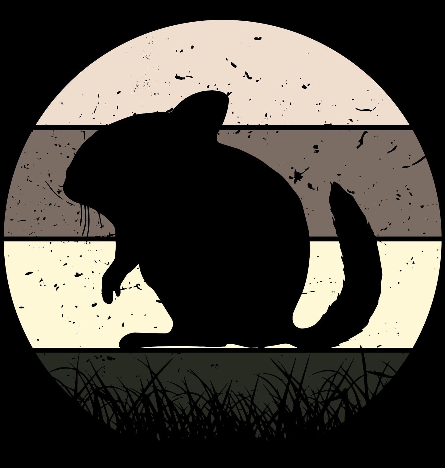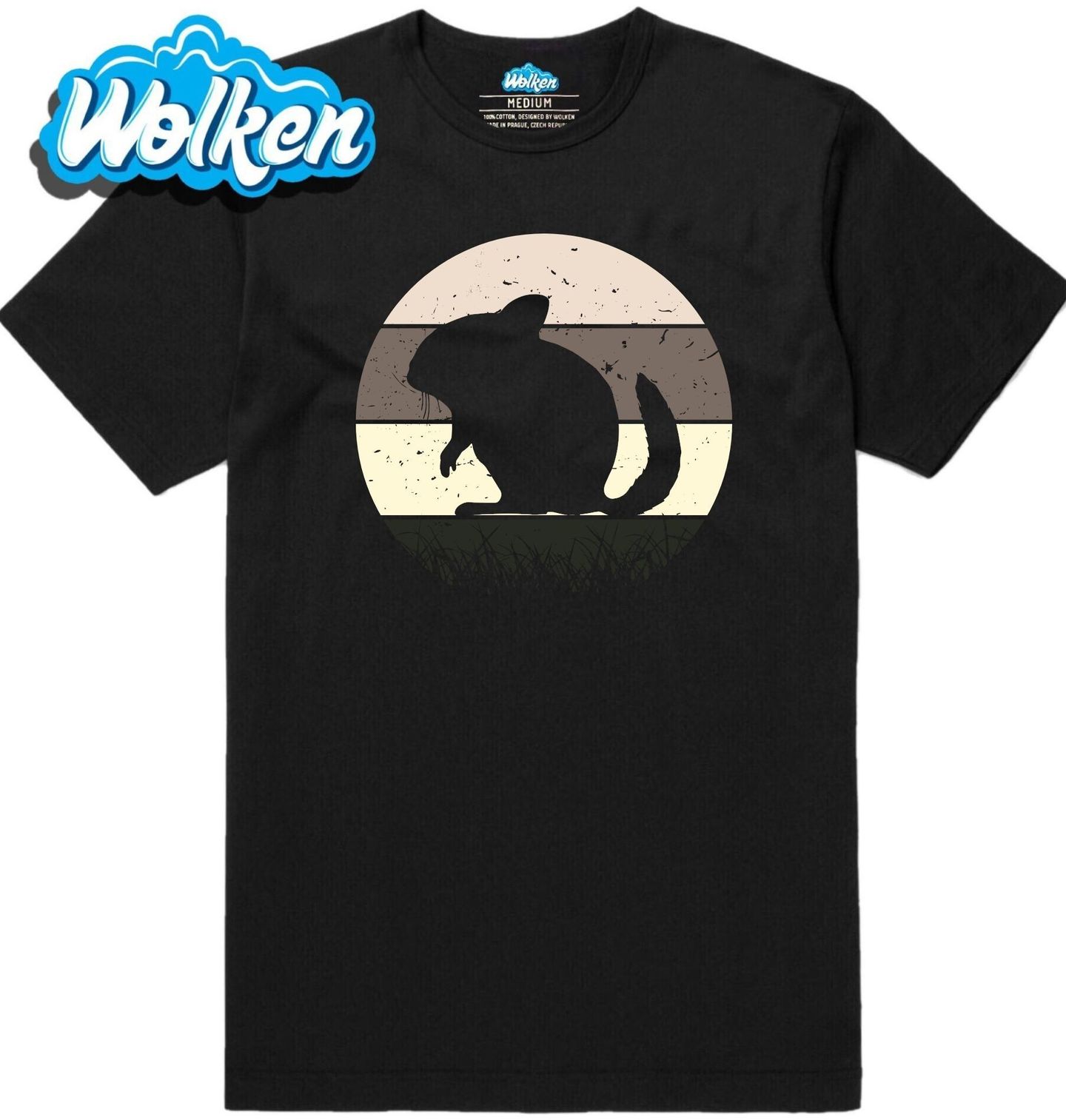 Pánské tričko Retro Činčila. Originální motiv se siluetou zvířete, které si získává srdce milovníků malých chlupáčů – hlodavec v retro stylu. Jemně vintage barevné pruhy a večerní atmosféra vytvářejí dokonalý kontrast k siluetě tohoto elegantního tvora.