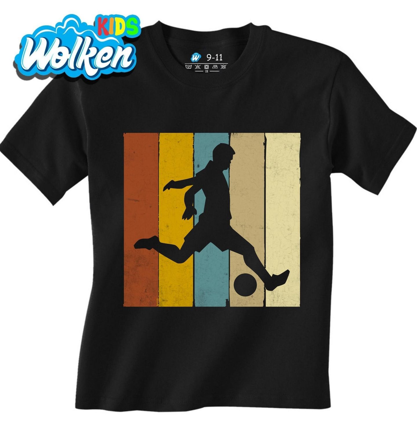 Dětské tričko Retro Hráč Fotbalu. Objevte jedinečný retro motiv fotbalu, který potěší každého milovníka sportu. Stylová silueta fotbalisty na pozadí v retro barvách dává jasně najevo vaši vášeň pro fotbal a zároveň přináší originální vintage vzhled. Ideální dárek pro sportovní fanoušky, fotbalisty nebo každého, kdo miluje retro styl.