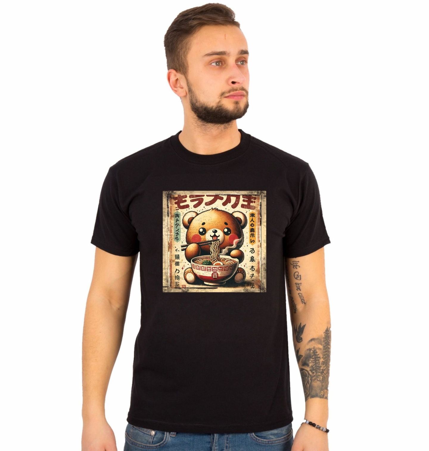Pánské tričko Retro Japonský Plakát Medvěd a Ramen