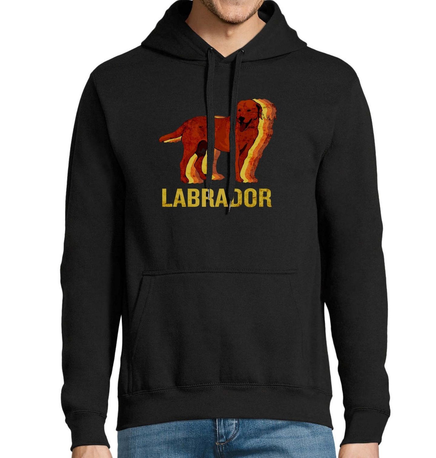 Pánská mikina Retro Labradorský retrívr. Tričko s originálním retro motivem zobrazujícím Labradorského retrívra v pohybu je ideální volbou pro každého pejskaře, který hledá něco výjimečného. Motiv kombinuje siluetu psa s barevným efektem v duchu 70. let – ideální spojení pro milovníky retra a plemene Labradorský retrívr. Ukaž, že pes není jen domácí mazlíček, ale životní styl!