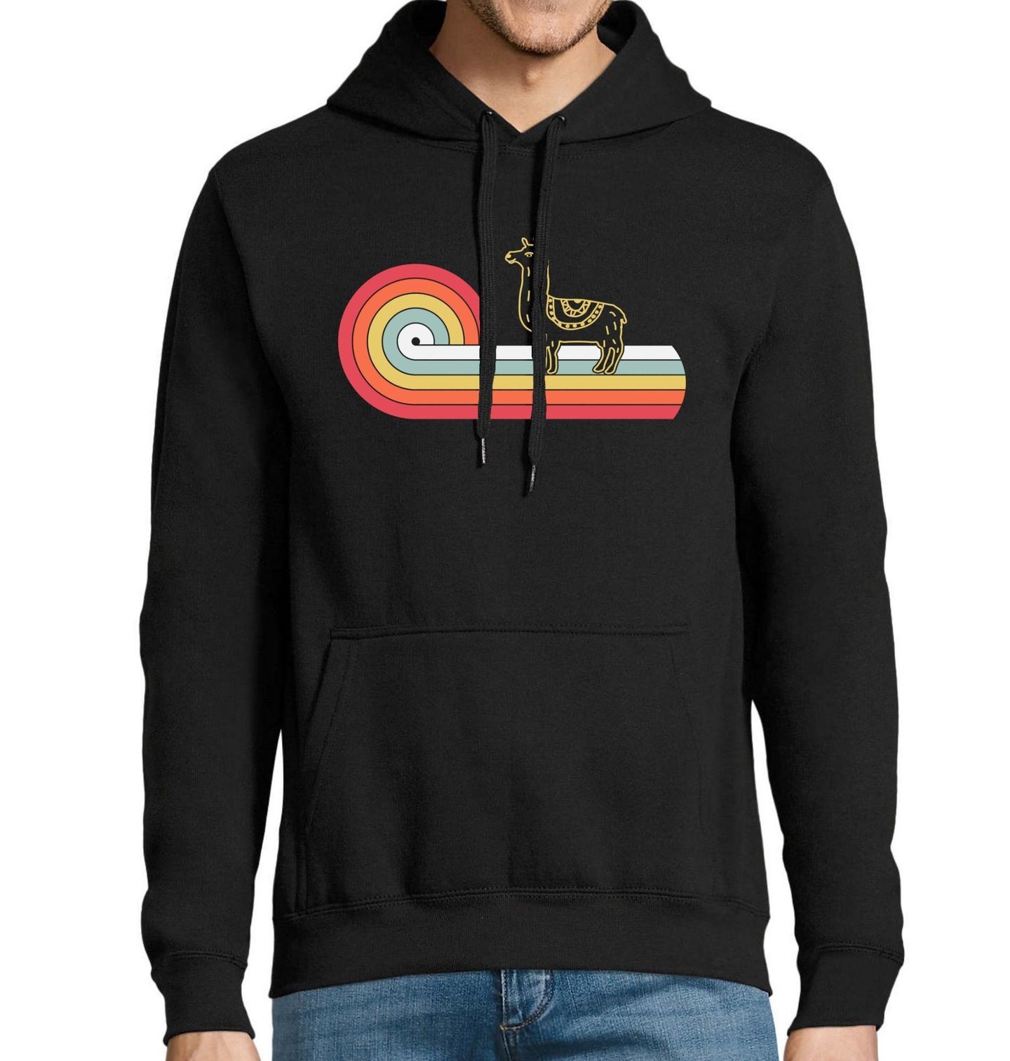 Pánská mikina Retro Lama. Stylová llama v originálním provedení na barevné retro vlně přináší dokonalou kombinaci minimalismu a hravosti. Jemné pastelové odstíny v kombinaci s černou siluetou vytvářejí nadčasový design, který zaujme na první pohled. Lama jako symbol klidu a pohody vás provede každým dnem s nadhledem.