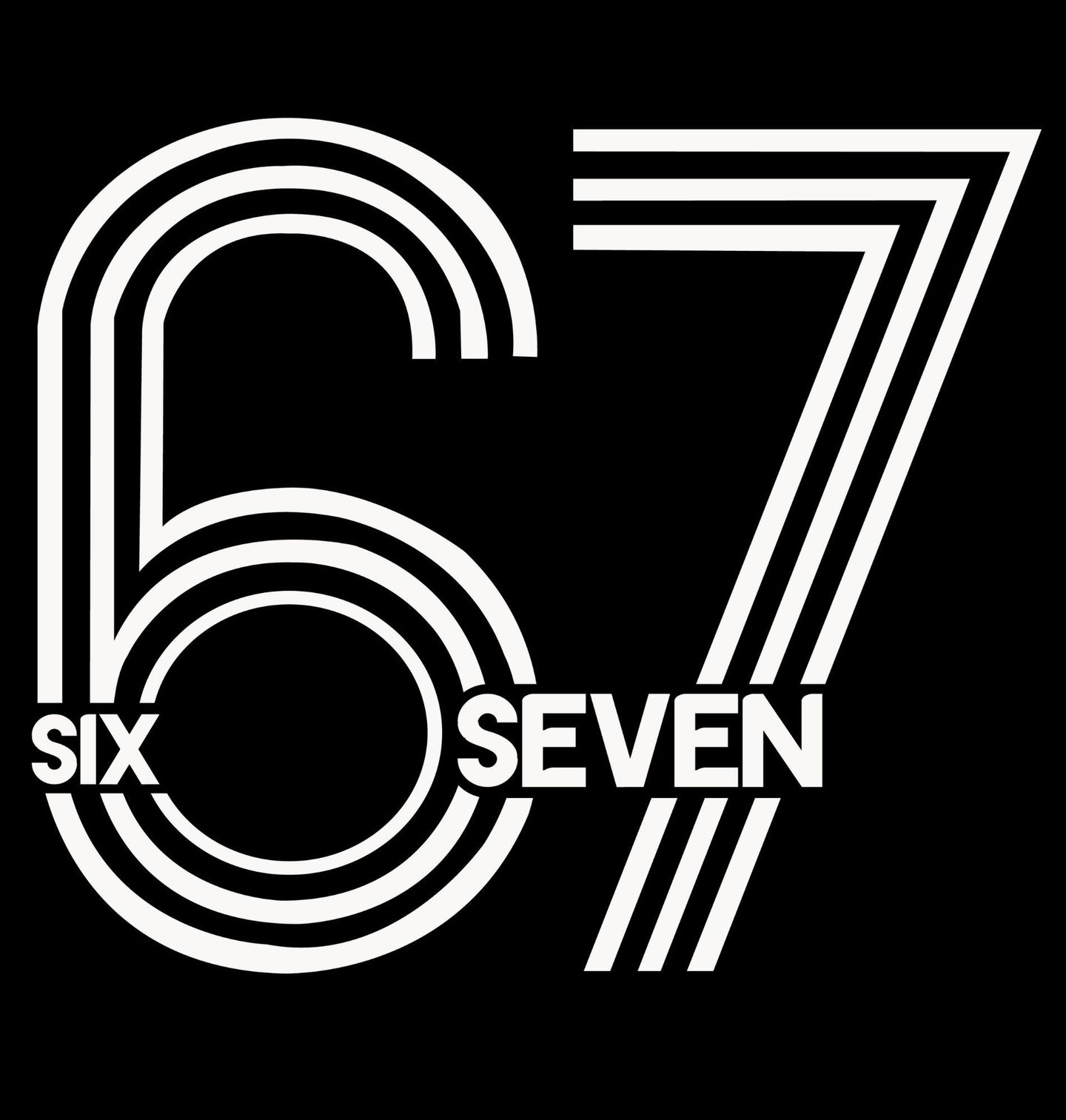 Pánská mikina Retro Line Art 67 Six Seven Meme. Stylový minimalistický motiv 67 v čistém retro „line art“ provedení. Bílý linkovaný design na černém pozadí působí moderně, elegantně a zároveň lehce nostalgicky. Uprostřed kompozice je výrazný nápis six seven, který odkazuje na populární internetový humor meme a dodává motivu hravost i nadhled.