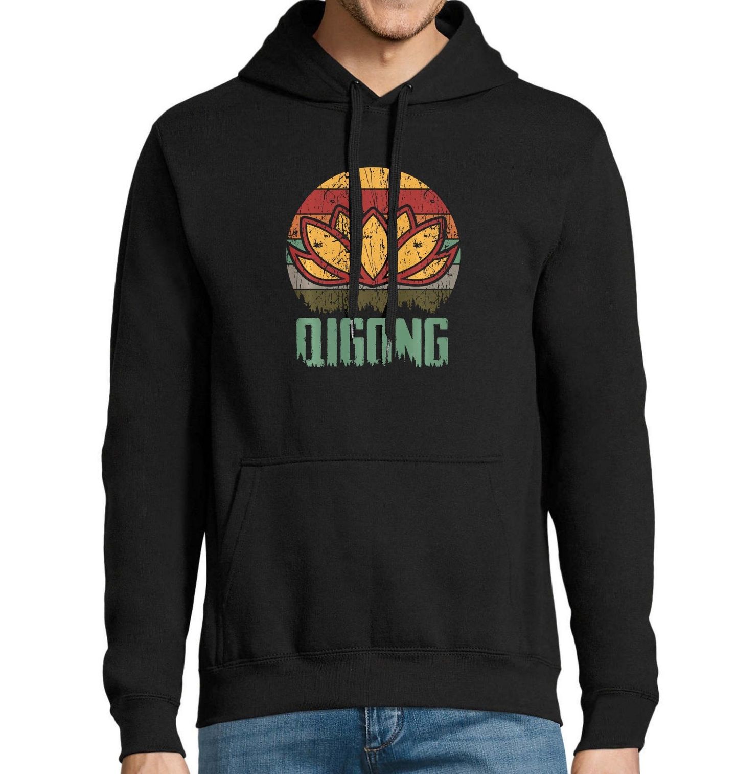 Pánská mikina Retro Lotusový Květ Čchi-kung Qigong. Čchi-kung (qi gong) je starobylý čínský systém tělesných a duševních cvičení, který spojuje pomalé pohyby, dýchání a meditaci k pěstování a kultivaci vnitřní životní energie (čchi) pro zlepšení zdraví. Skvěle se hodí pro milovníky jógy a meditace.