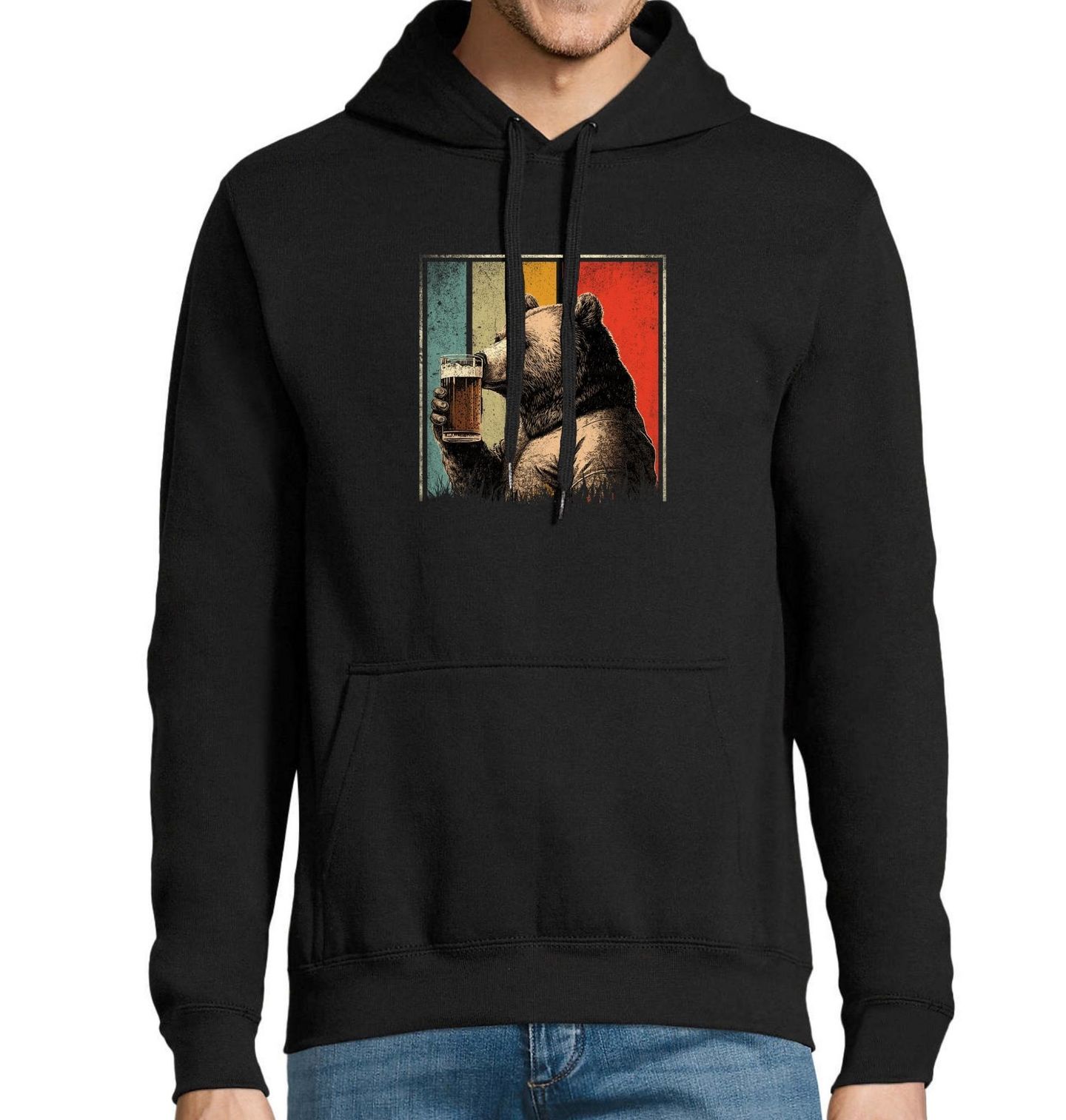 Pánská mikina Retro Medvěd s Pivem. Originální motiv s pořádným chlapákem – tedy medvědem, který si užívá zasloužený půllitr piva. To vše ve stylovém retro designu s barevným vintage pozadím. Medvěd, pivo a retro styl – svatá trojice pohodového večera. Perfektní dárek pro pivaře, fanoušky lesního humoru i milovníky originality.