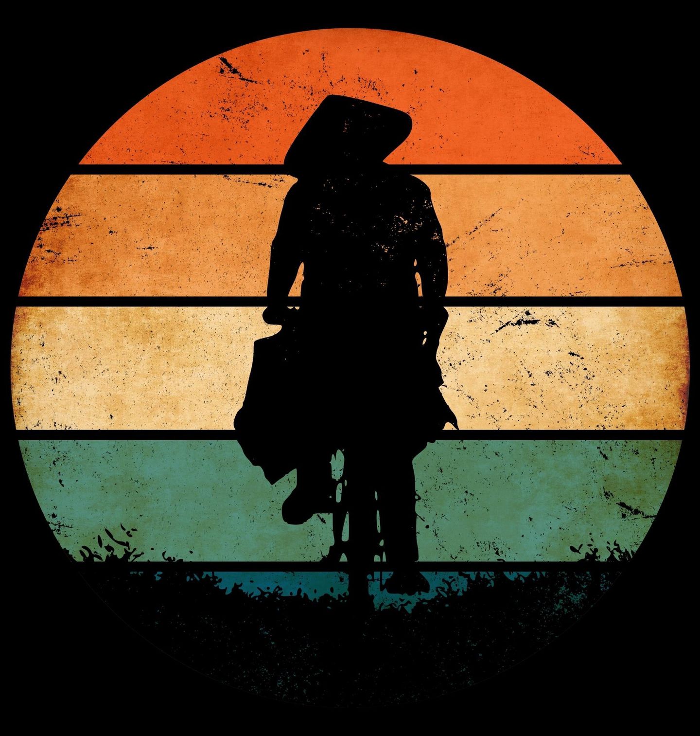 Dámské tričko Retro Silueta Asijského Cyklisty. Stylový motiv se siluetou postavy na kole zachycuje klidnou atmosféru a dobrodružství inspirované dálkami, jako je Asie. Dominantním prvkem je kolo, které symbolizuje svobodu, pohyb a objevování nových míst. Retro barevné ladění připomíná západ slunce a dodává celému designu jedinečný charakter.