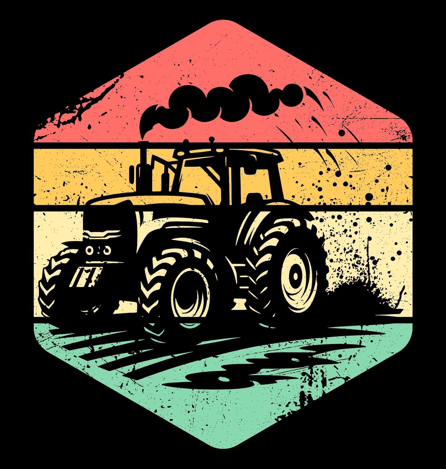 Pánské tričko Retro Traktor. Tento originální vintage motiv spojuje vášeň pro traktor, lásku k práci na poli a srdce každého pravého farmáře. Silueta mohutného traktoru v kontrastu se stylovým barevným pozadím dává jasně najevo, kdo je pánem zemědělství!