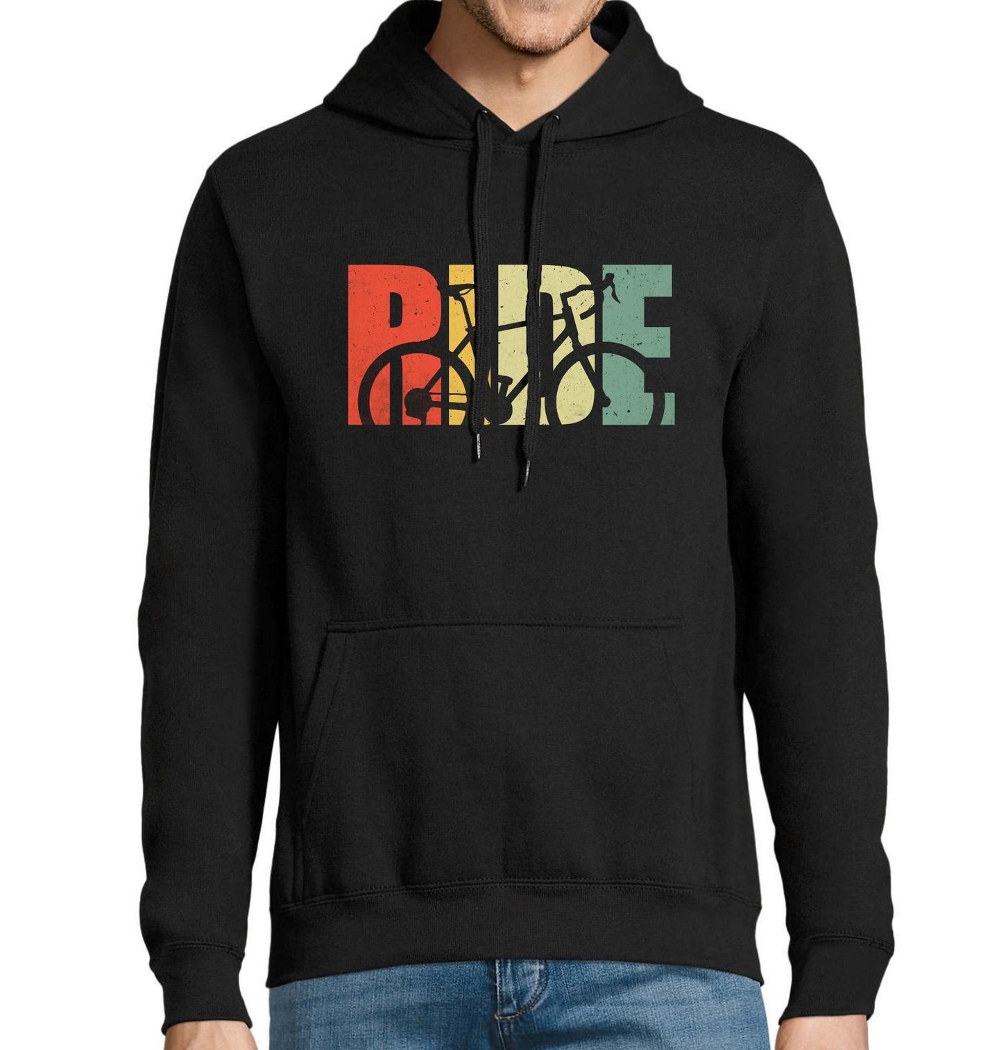 Pánská mikina RIDE Retro Kolo. Vyjádři svou vášeň pro cyklistiku stylově! Výrazný nápis „RIDE“ a silueta kola v retro barevné paletě je dokonalým kouskem pro každého cyklistu. Ideální pro vyjížďky, do města i na lenošení po tréninku. Dej světu najevo, že jízda je tvůj životní styl!