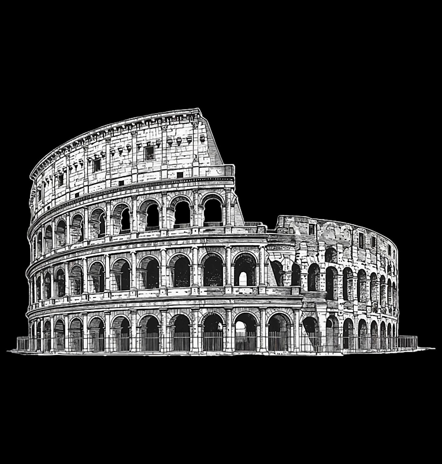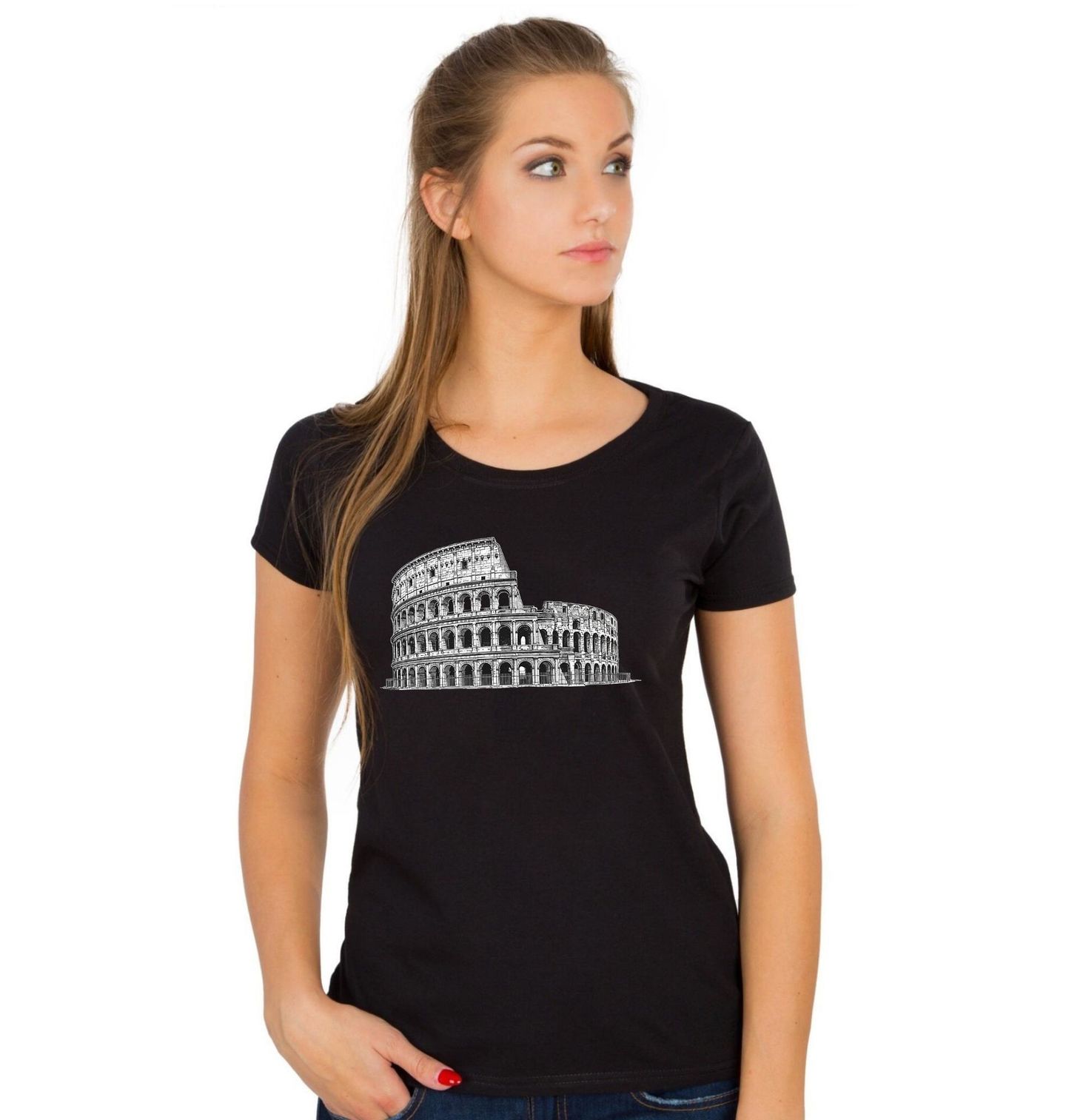 Dámské tričko Římské Koloseum. Stylový motiv legendární antické stavby Koloseum, která je symbolem města Řím a celé Itálie. Detailní kreslené zpracování zachycuje majestátní podobu tohoto římského amfiteátru, kde se psala historie už před dvěma tisíci lety. Tento design je ideální pro milovníky cestování, historie a architektury.