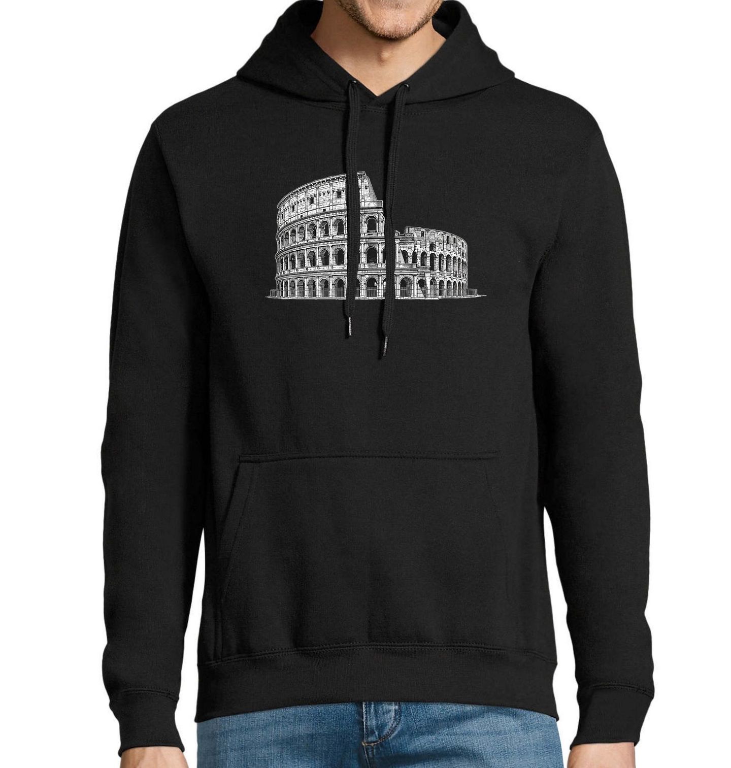 Pánská mikina Římské Koloseum. Stylový motiv legendární antické stavby Koloseum, která je symbolem města Řím a celé Itálie. Detailní kreslené zpracování zachycuje majestátní podobu tohoto římského amfiteátru, kde se psala historie už před dvěma tisíci lety. Tento design je ideální pro milovníky cestování, historie a architektury.