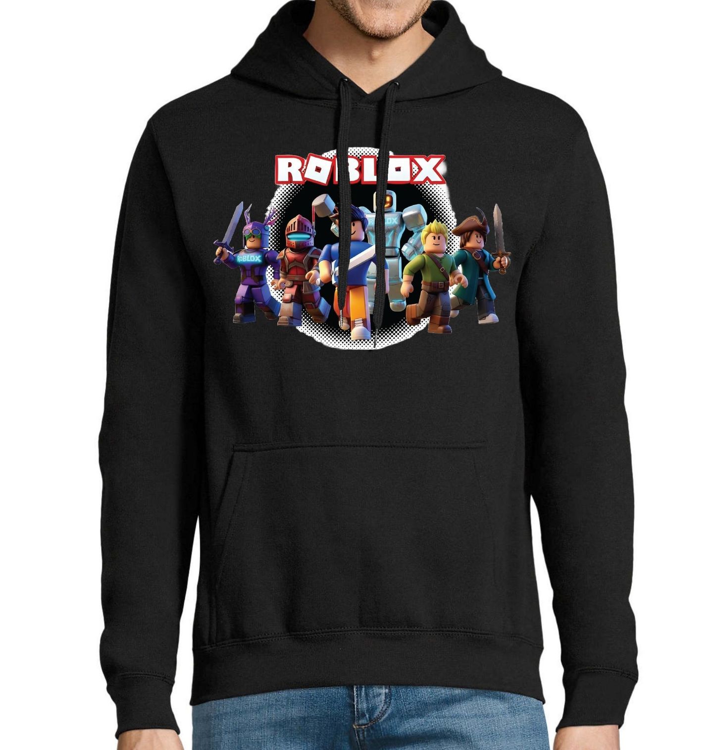 Pánská mikina Roblox Dobrodružná Parta. Dynamický herní motiv inspirovaný světem roblox, kde každý gamer a každý hráč může prožít vlastní dobrodružství. Design zobrazuje partu akčních avatarů – rytíře, robota i dobrodruhy připravené na výpravu, což vystihuje kreativitu a svobodu, kterou roblox nabízí. Roblox je platforma plná fantazie, kde gamer vytváří nové světy a hráč objevuje nekonečné možnosti herních stylů.