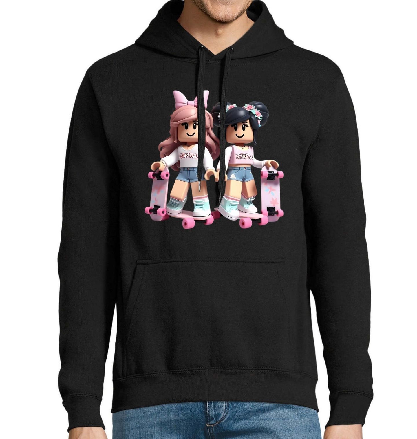 Pánská mikina Roblox Holky na Skateboardu. Roztomilý motiv inspirovaný světem roblox, který si zamiluje každý gamer i kreativní hráč. Design s dvojicí stylových postaviček na skateboardu přináší hravou atmosféru a moderní herní vibe. Motiv roblox je ideální pro všechny, kdo rádi objevují nové světy, tvoří vlastní avatar a chtějí ukázat, že gamer styl patří i do běžného života.