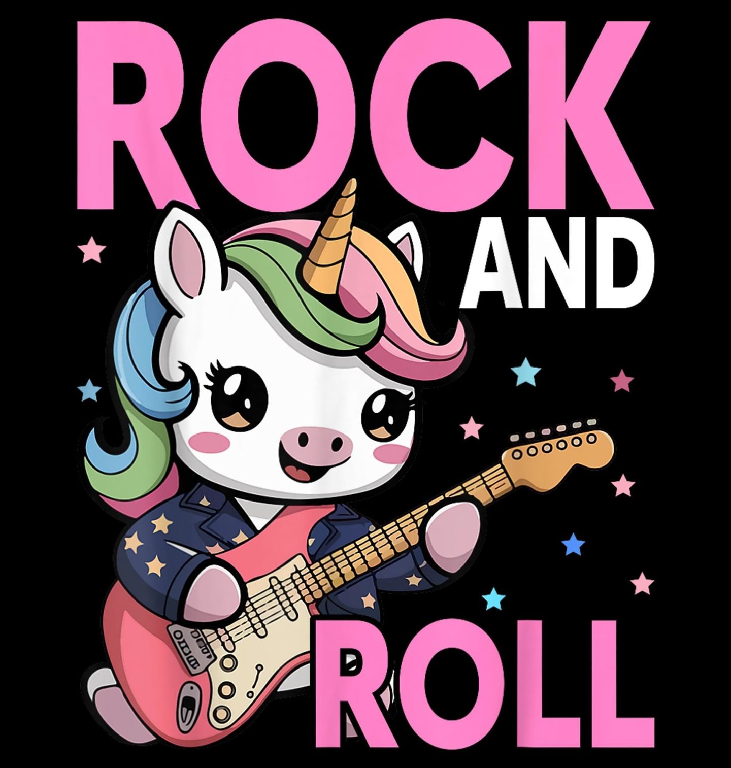 Pánské tričko Rockový Jednorožec. Roztomilý a hravý motiv spojuje kouzelný svět fantasy a energii Rock and Roll do jednoho originálního designu. Hlavní postavou je veselý jednorožec s duhovou hřívou, který hraje na elektrickou kytaru a rozdává radost i hudební nadšení. Rock and Roll zde dostává hravý a pohádkový nádech – jednorožec symbolizuje jedinečnost, odvahu a radost ze života.