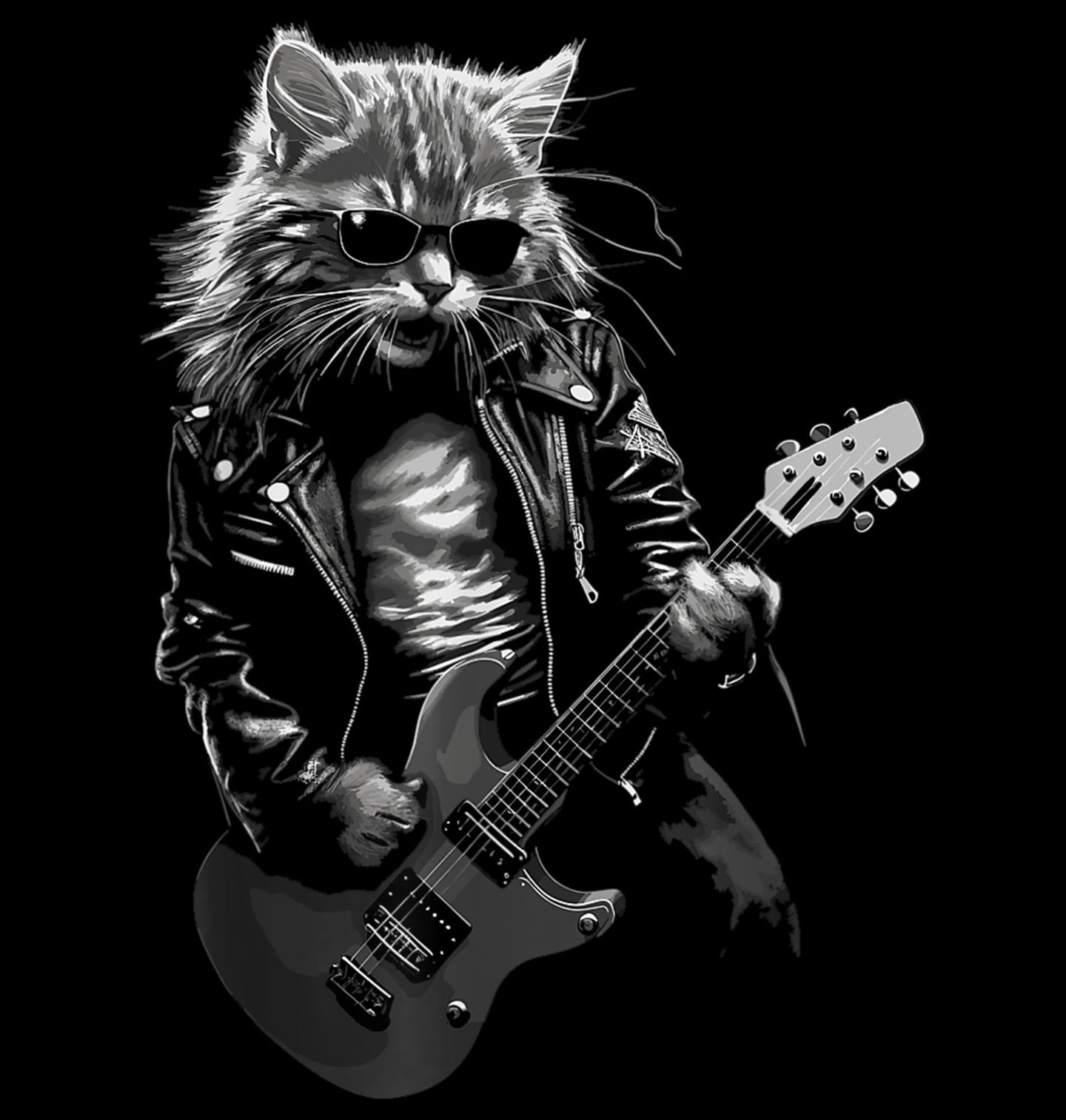Dětské tričko Rockový Kocour s Kytarou. Detailně zpracovaná kočka působí jako skutečný rockový kytarista – má výraz, postoj i styl pravého rebela. Motiv je ideální pro všechny milovníky hudby, kytarových riffů a legendárního rock and roll. Skvěle se hodí pro fanoušky rockové estetiky, motorkářského stylu i pro každého, kdo chce ukázat svou vášeň pro hudbu trochu jinak.