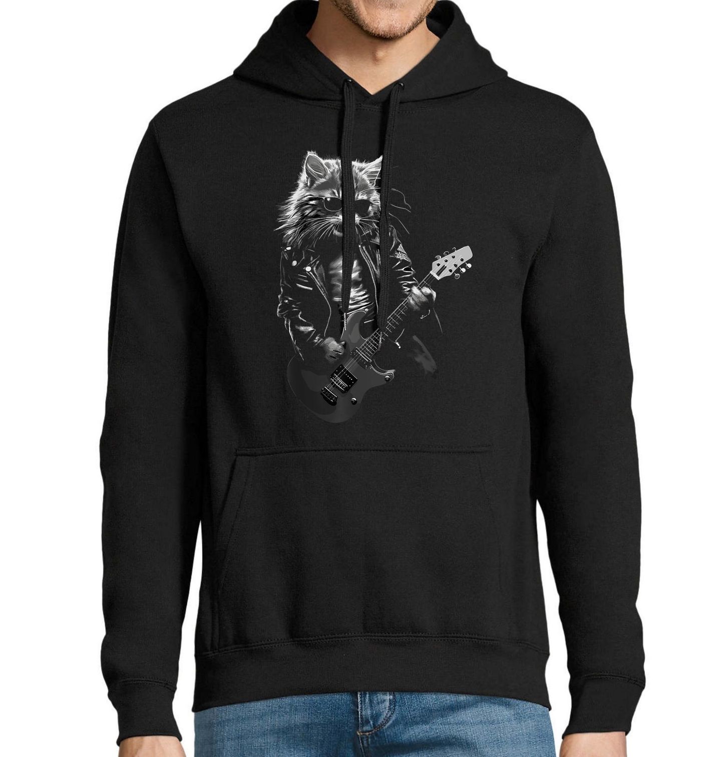 Pánská mikina Rockový Kocour s Kytarou. Detailně zpracovaná kočka působí jako skutečný rockový kytarista – má výraz, postoj i styl pravého rebela. Motiv je ideální pro všechny milovníky hudby, kytarových riffů a legendárního rock and roll. Skvěle se hodí pro fanoušky rockové estetiky, motorkářského stylu i pro každého, kdo chce ukázat svou vášeň pro hudbu trochu jinak.