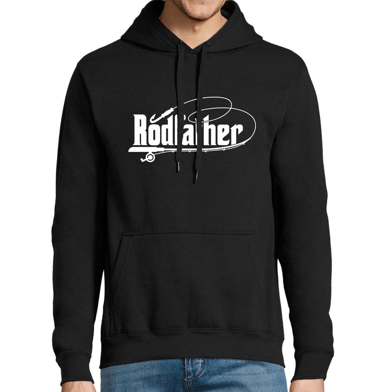 Pánská mikina Rodfather Kmotr Rybář. Rodfather – parodie na slavný film Kmotr (Godfather), tentokrát v podání zapáleného rybáře! Pokud je tvůj rybářský prut tou nejmocnější "zbraní", kterou vlastníš, tohle tričko je přesně pro tebe. Skvělý dárek pro každého rybáře, který miluje humor, filmy a samozřejmě rybaření.