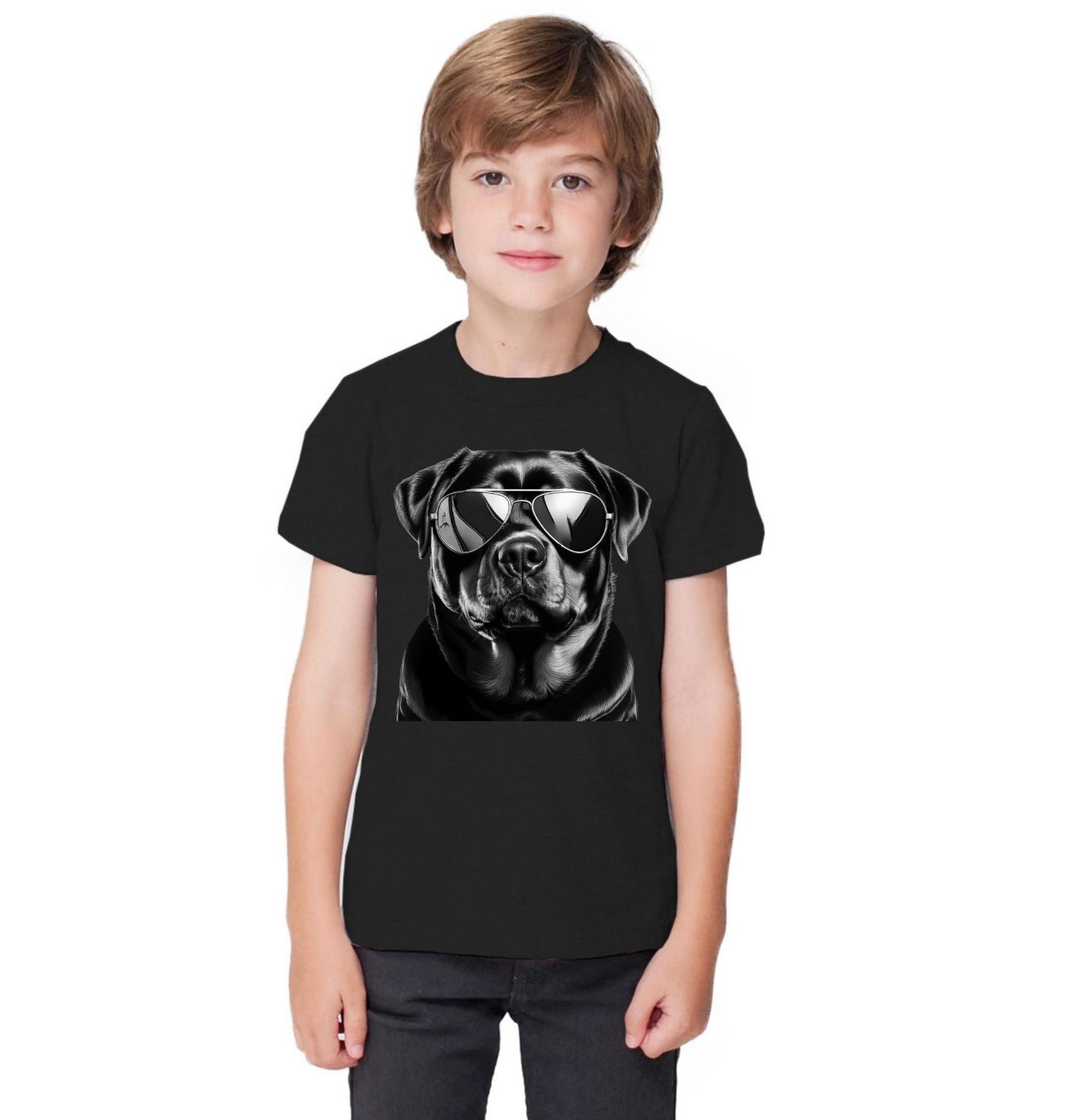 Dětské tričko Rotvajler s Brýlemi. Stylový motiv, kde pes plemene rotvajler vystupuje v moderních brýlích, spojuje sílu a nadhled v jednom originálním designu. Výrazná grafika okamžitě zaujme a potěší každého, kdo ví, že rotvajler není jen hlídač, ale také věrný parťák. Každý pejskař ocení detailní zpracování a sebevědomý styl, který dodá outfitu osobitost.