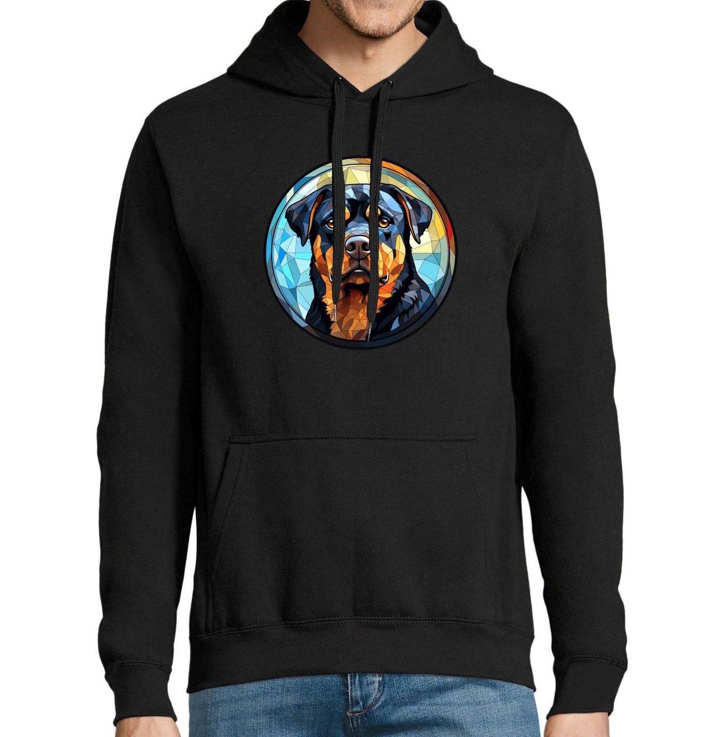 Pánská mikina Rotvajler ve Vitráži Stained Glass. Silný, klidný a nepřehlédnutelný. Ideální dárek pro každého, kdo ví, že Rotvajler není jen hlídač, ale i věrný parťák. Design spojuje respekt a něhu v jednom obrazu – jako sám pes. Každý pejskař si tento motiv zamiluje na první pohled.