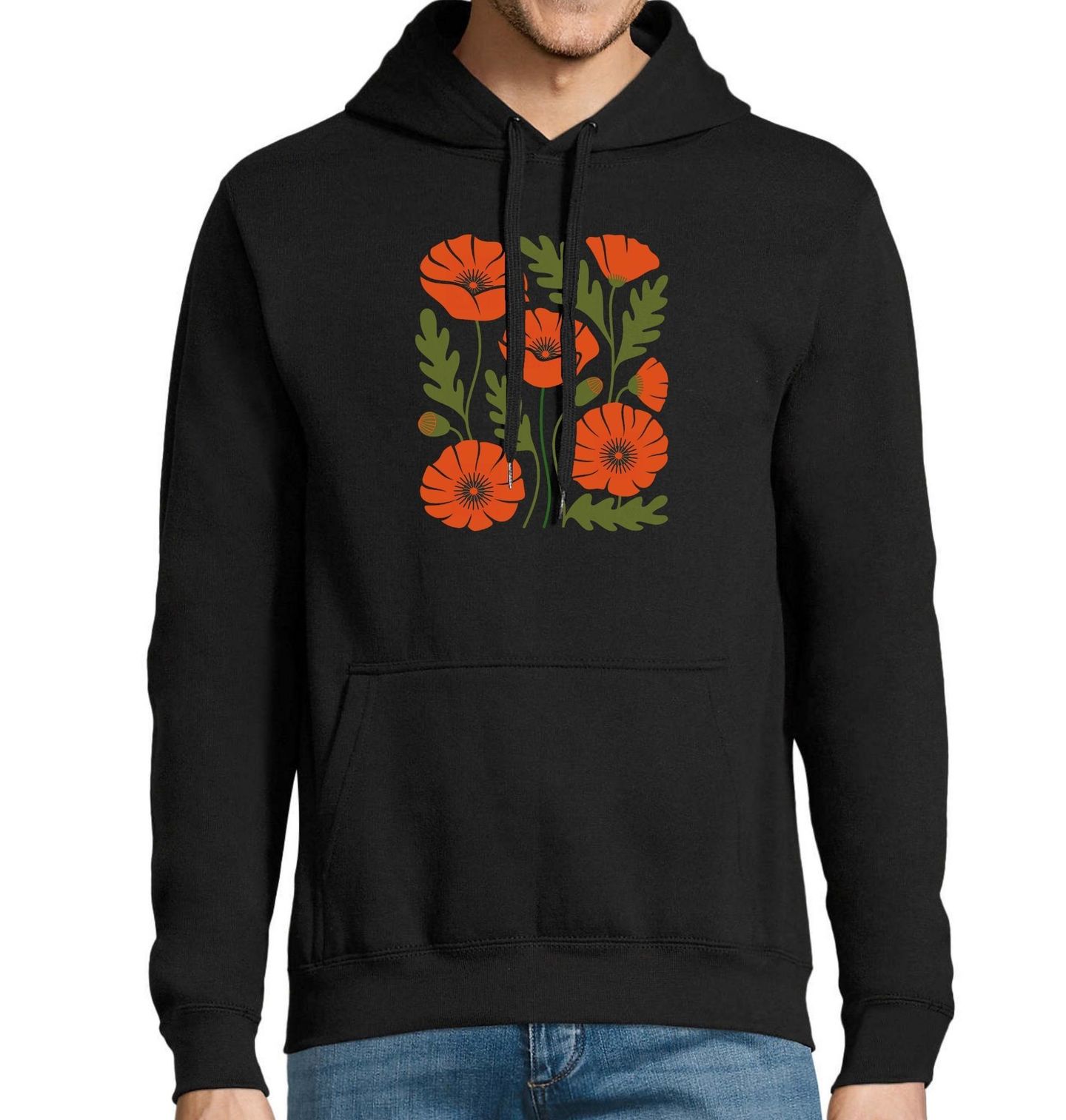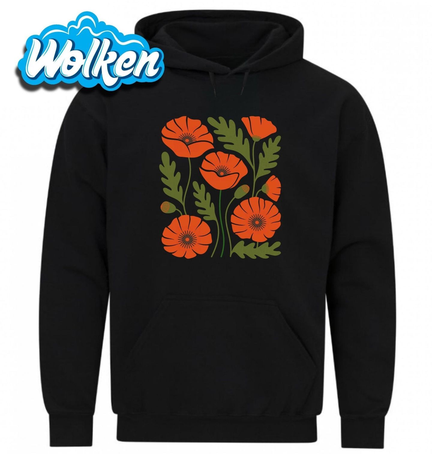 Pánská mikina Rozkvetlý Vlčí mák. Motiv zobrazuje rozkvetlé červené máky s bohatými zelenými listy, které vytvářejí výrazný kontrast a přitahují pozornost na první pohled. Mák je květina známá svou elegancí, jemností a symbolikou lásky i vzpomínek. Tento motiv je ideální pro milovníky přírody, květin a minimalistického stylu.