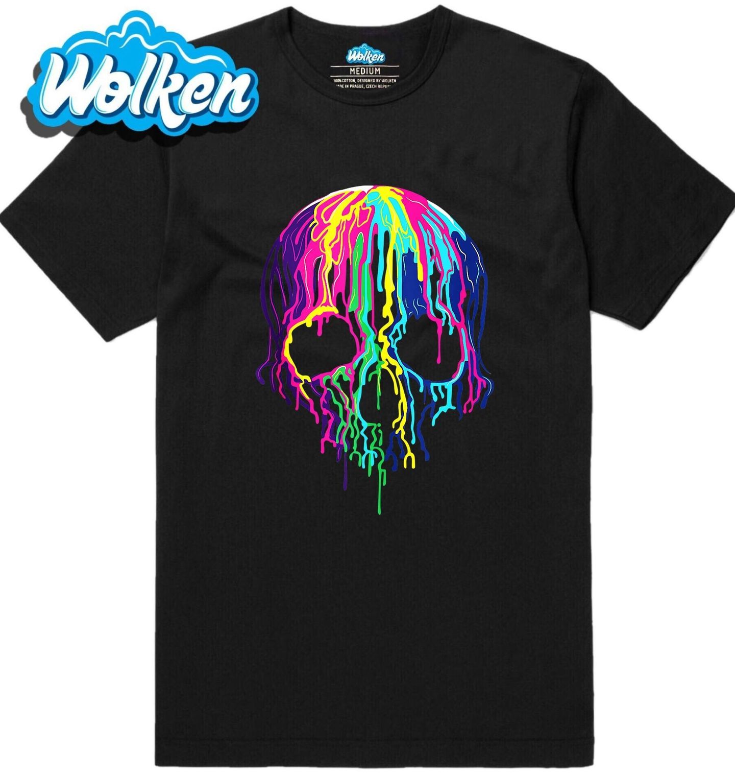 Pánské tričko Rozteklá Psychadelická Lebka. Barevný a psychadelický motiv, který propojuje temnotu s výbuchem kreativity. Tahle lebka se doslova rozplývá v duhovém šílenství! Perfektní pro každého, kdo chce ukázat, že originalita nikdy neumírá.
