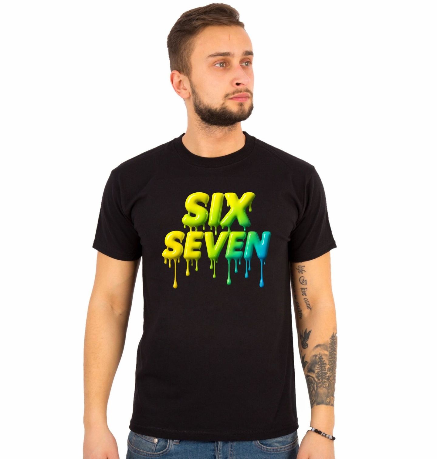 Pánské tričko Rozteklý Meme 67 Six Seven. Čísla SIX SEVEN nejsou náhodná – odkazují na virální meme z TikToku a Instagramu, které ovládlo internet v roce 2025. Spojení neonového estetična, digitální kultury a naprostého nesmyslu dává vzniknout motivu, který je stylový, vtipný a lehce mimo – stejně jako ty nejlepší memy.