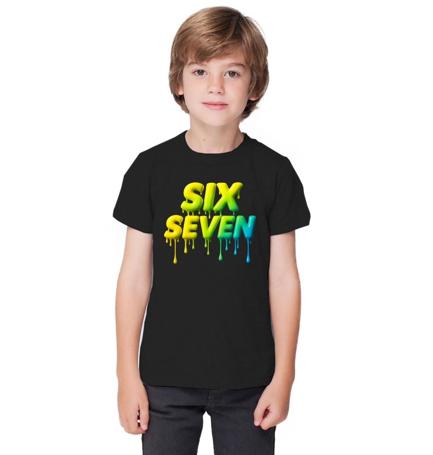 Dětské tričko Rozteklý Meme 67 Six Seven. Čísla SIX SEVEN nejsou náhodná – odkazují na virální meme z TikToku a Instagramu, které ovládlo internet v roce 2025. Spojení neonového estetična, digitální kultury a naprostého nesmyslu dává vzniknout motivu, který je stylový, vtipný a lehce mimo – stejně jako ty nejlepší memy.