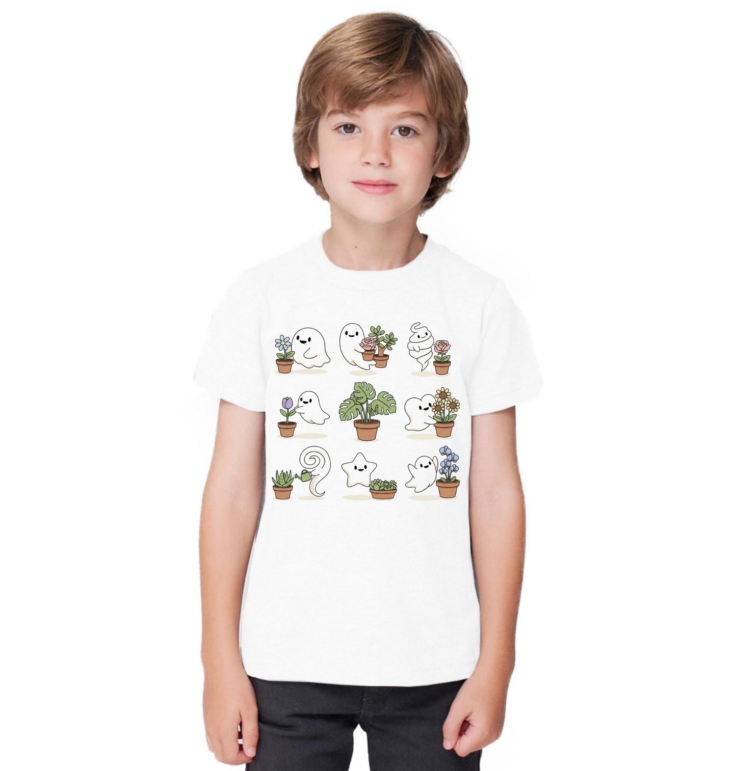 Dětské tričko Roztomilí Duchové s Květinami. Originální design kombinuje motivy duchů a rostlin v roztomilém stylu. Malí duchové pečují o květiny a pokojové rostliny, což vytváří hravou a pozitivní atmosféru. Ideální pro milovníky cute ilustrací, rostlin a originálního humoru.